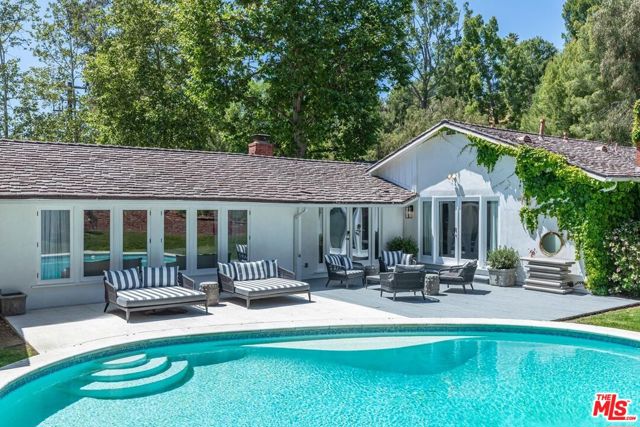 Drive up your tree lined U shaped driveway to your very own tranquil ranch estate offering 1.6 picturesque acres in the prestigious guard-gated community of Hidden Hills. Nestled at the end of a private cul-de-sac the property provides exceptional privacy. The home features light-filled living spaces with hardwood floors, high ceilings, and fireplaces throughout. Floor-to-ceiling doors open to a seamless indoor-outdoor flow, leading to gorgeous outdoor entertaining area that spans from a pristine front courtyard to lush equestrian grounds and a landscaped backyard with a heated pool and Guest House. A nearly 800-square-foot guest house and pool house provide added flexibility on this 5 -bedroom, 5-bathroom estate. An idyllic lifestyle awaits in one of L.A.'s most exclusive communities. Inquire about the option to acquire the neighboring estate and create your ultimate compound.
