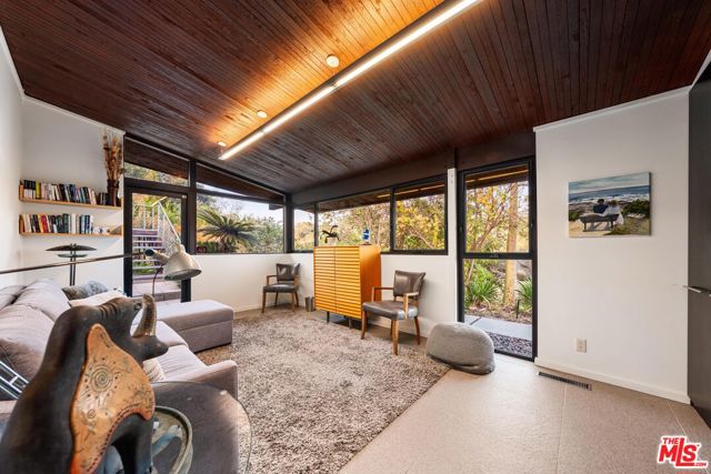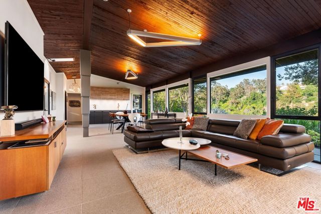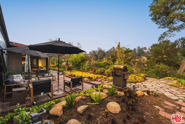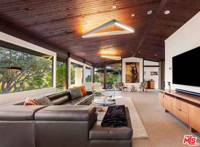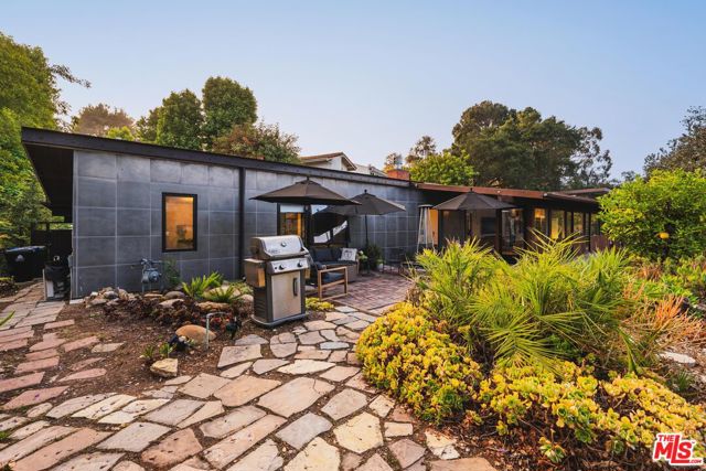 A true mid-century modern, custom-built home designed to stand apart from the rest of the neighborhood, this Bel Air retreat embodies the essence of classic California architecture. A serene architectural sanctuary nestled in the hills, this rare gem seamlessly blends vintage character with functional, everyday comfort. Thoughtfully preserved and updated, the residence honors its era while offering over 3,000 square feet of refined living space on more than half an acre of private, landscaped grounds. Upon entry, the foyer opens to generous main living areas including the great room, kitchen, and dining space, all flowing effortlessly together and framed by sweeping views of the surrounding hills and lush landscape. Original built-ins, curated finishes, and modern lighting strike a perfect balance of warmth and sophistication. The open kitchen features skylights, stainless steel appliances, custom cabinetry, and a cozy breakfast nook, ideal for entertaining. The primary suite offers outdoor access, a spa-like en-suite bath, walk-in closet, and the same refined design found throughout the home. Two guest bedrooms and a full bath complete the main residence. Outdoors, a spacious patio and garden invite peaceful moments amid treetop and canyon views, leading to a detached bonus structure currently used as a game room. With walls of glass and panoramic vistas, this space is ideal for a gym, studio, or creative workspace. Privately tucked away yet minutes from all the action, this home provides easy access to Beverly Hills, Brentwood, Sherman Oaks, and the greater San Fernando Valley, as well as LA's premier dining, shopping, and entertainment. A rare offering for those seeking design, privacy, and proximity.