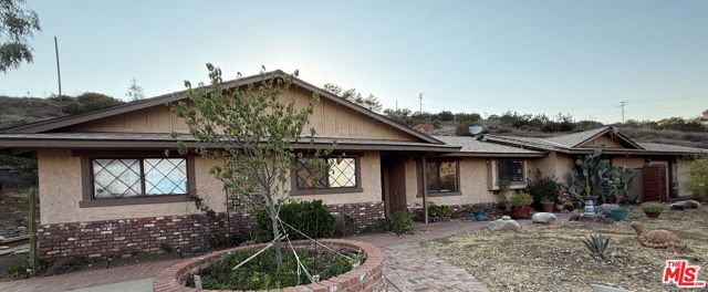 Charming Country Home with Barn, Mountain Views & Room to Roam . Welcome to your private 2.5-acre retreat in the heart of Agua Dulce! This single-story 4-bedroom, 2-bathroom home offers 1,714 sq ft of comfortable living space, complete with breathtaking mountain views, a newer roof, and endless potential. Tucked away on a private road just minutes from Agua Dulce's quaint town center and the iconic Vasquez Rocks, this peaceful property is perfect for equestrians, outdoor enthusiasts, hobby farmers, or anyone craving open space and quiet country living while still being within easy reach of Los Angeles and the San Fernando Valley. The home features a spacious country-style kitchen with stainless steel appliances, opening to a sunny dining area with views of the landscape. A separate living room with a large brick fireplace offers a cozy place to relax, while the family room includes a custom wood bar, charming potbelly stove, and tile flooring perfect for entertaining. The primary suite opens directly to a large, covered patio, ideal for morning coffee or evening sunsets. In addition to the covered patio, there's also a bright enclosed sunroom for extra living space or a quiet reading nook. Outside, the fully fenced property offers endless possibilities. A large barn with horse facilities makes this a dream setup for horse owners, and there's ample space for RVs, trailers, and multiple vehicles. The 2-car garage adds convenience, while wide open land invites gardening, expansion, or simply enjoying the peaceful natural surroundings. With its functional layout, generous outdoor space, and incredible location near trails, vineyards, and scenic beauty, this home blends country charm with modern comfort. Whether you're looking for a full-time residence or a weekend escape, this is a rare opportunity to own usable land and a solid home in one of Agua Dulce's most desirable areas. The setting, privacy, and potential are truly unmatched. Information deemed reliable but not guaranteed. Buyer to verify all details.