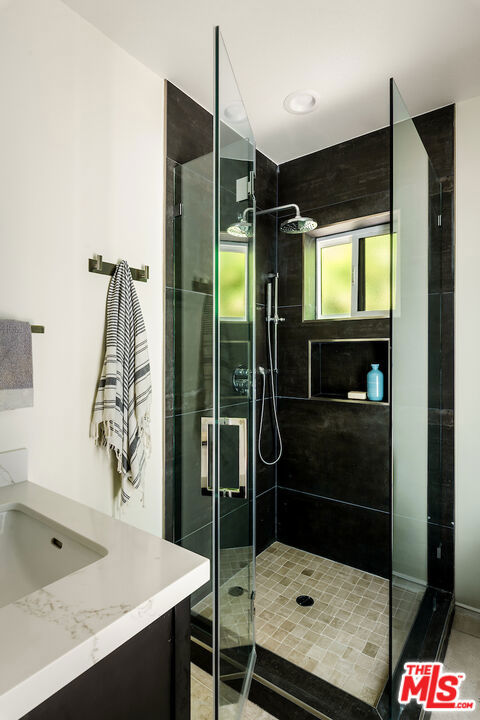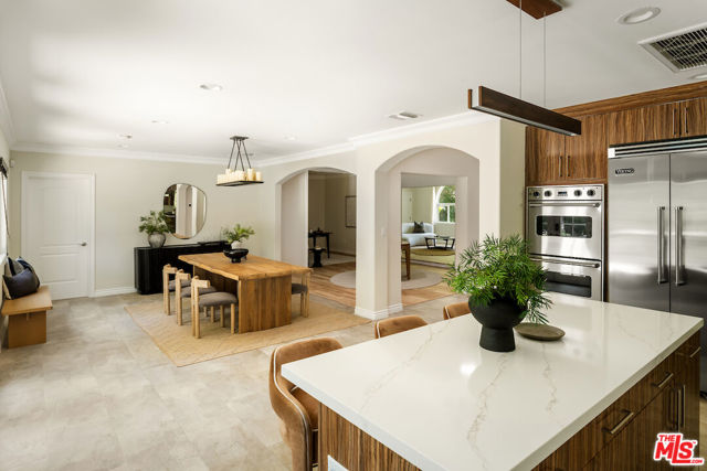 Discover this gated Mediterranean residence nestled in Pasadena's prestigious Linda Vista neighborhood. Situated on a spacious, flat lot, the property boasts a grand front lawn and lush tropical landscaping that create a welcoming, resort-like ambiance. Step into the broad formal entryway that sets the tone upon arrival. By combining two of the bedrooms, a true primary retreat that has been created, now offering en-suite living room. Its luxurious spa-inspired bathroom features radiant heated floors, a soaking tub, and a glass shower. The chef's kitchen is outfitted with Viking appliances, an oversized refrigerator, and a walk-in pantry, perfect for entertaining. Modern upgrades include a 12.4 kW solar array with Tesla Powerwall, EV charging station, Yale smart locks, Nest Protect system, and a Waterdrop reverse-osmosis in kitchen, filtration system servicing the entire home. Enjoy outdoor living at its finest with a saltwater, resort-style pool and spa, complemented by different areas for dining, grilling, and lounging beneath mature palms. Just minutes from the Rose Bowl, Old Town Pasadena, and JPL.