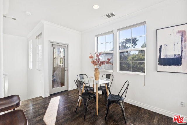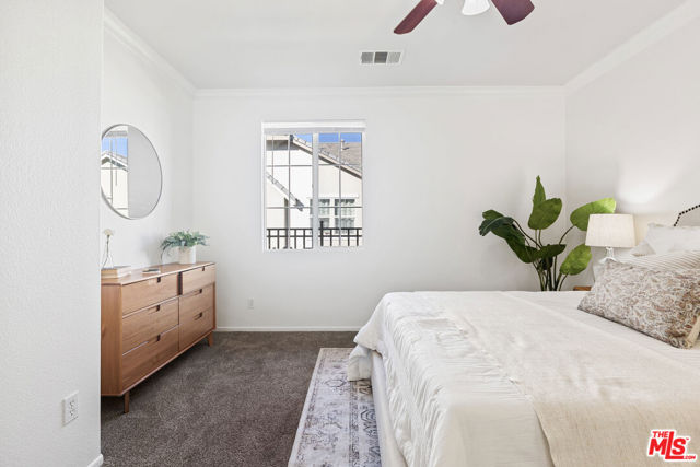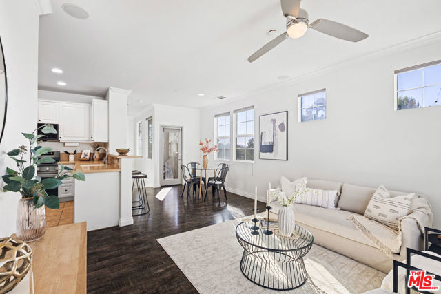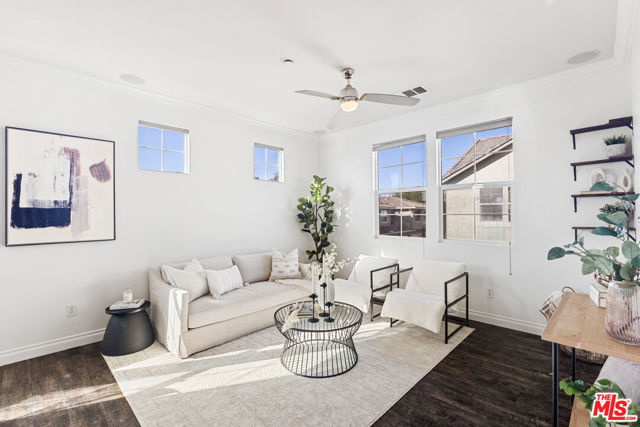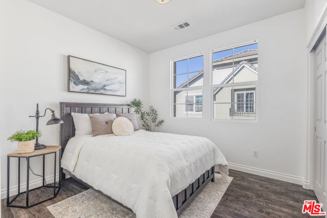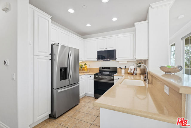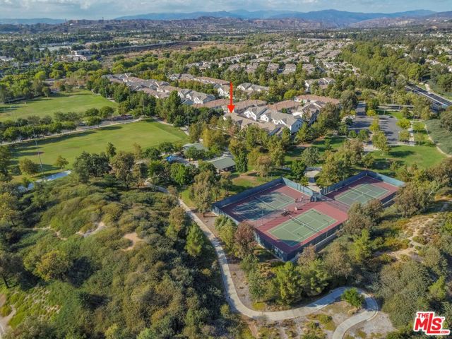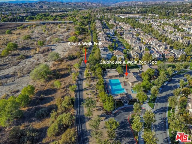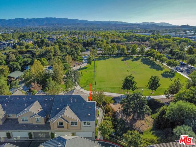 Welcome to this bright and beautifully upgraded 2-bedroom, 2-bathroom end-unit townhouse in the desirable Brookside Walk community of Valencia. Situated on the top corner above its own private 2-car garage, this home offers a spacious, open layout with vinyl plank floors throughout the main living areas and front bedroom. The kitchen boasts stainless steel appliances, crisp white cabinetry, and a breakfast bar that flows seamlessly into the dining and living areas each with tranquil views of Heritage Park. Step onto your private balcony and take in the serene vistas of the park, mountains, and majestic oak trees. The primary suite includes a generous walk-in closet and en-suite bath with dual vanities, while a newer full-size stackable washer and dryer provide modern convenience.Set within Valencia's sought-after Creekside neighborhood, residents enjoy resort-style amenities including a pool, spa, and scenic biking trails. Just minutes from Bridgeport Park, award-winning schools, shopping, dining, and Valencia's famous paseos, this home perfectly blends comfort, convenience, and lifestyle. Don't miss this exceptional opportunity!