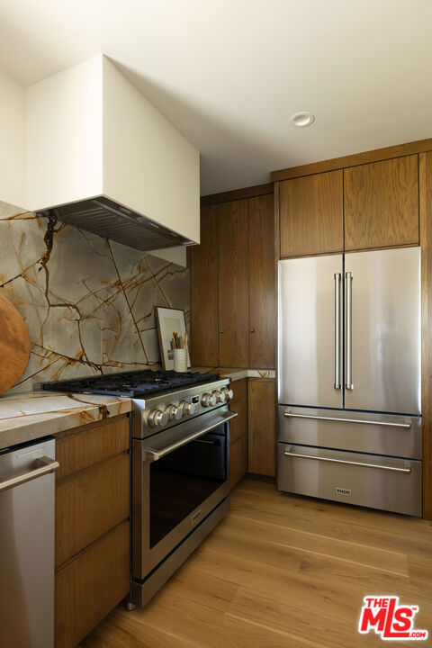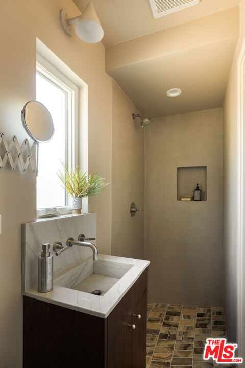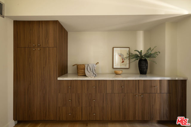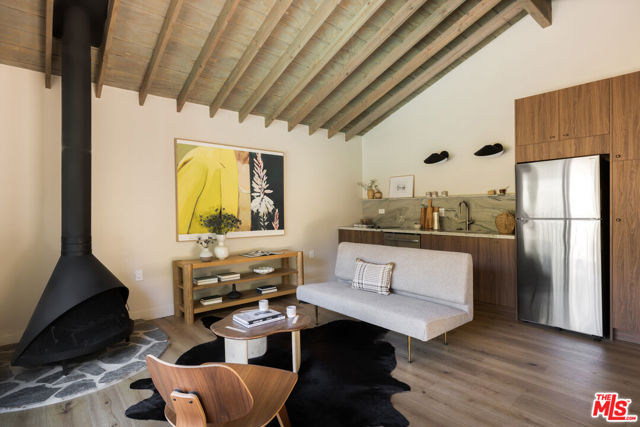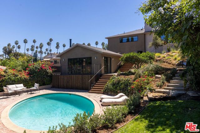 Unveiling an Unrivaled Opportunity for California Living in View Park. Redesigned with care and attention by Vein Design, and brought to life by CCS Construction, this one-of-a-kind compound blends luxury with comfort and ease.Behind its unassuming facade lies a bespoke expanse: a 4-bedroom, 4-bath main residence, an accommodating pool house, and lushly sprawling exterior grounds with beautiful and mature vegetation including a grass yard, an outdoor kitchen, numerous lounge and entertaining areas, and a sparkling pool that yes, really hosts the cutest family of ducks (and they come with the residence!). Stepping inside, natural light dances across wide-plank wood floors before an undulating plastered fireplace draws your attention to seamless sightlines that invite both serenity and style. Tailored millwork leads down the hallway toward two bedrooms with a shared Jack-and-Jill bath, each thoughtfully designed with built-in desks overlooking the street. A statement powder bath accommodates guests before the hallway culminates with a linen closet and a surprisingly spacious pantry and secluded laundry room space.An entertainer's dream, the kitchen is the heart of the home, boasting professional-grade stainless steel appliances, handcrafted cabinetry, and an ample quartzite peninsula ready for unforgettable meals and gatherings. On the lower level, an en suite bedroom with private access creates flexibility for guests, quiet office space, or an income opportunity.Your primary sanctuary boasts sun-dappled spaces and a designated flagstone patio for morning coffee or moonlit evenings. The owner's bath is bright, softly hued, and designed with ample storage, as is the adjacent walk-in closet, thoughtfully laid out for you to unpack into on your very first day.The exterior however sets this property apart - giving luxurious estate energy. The pool house delivers a kitchenette, a Malm wood-burning fireplace, and a full bath. Outdoors, life unfolds effortlessly, slide open the pool house doors to a sun-drenched deck, enjoy weekend BBQs at your outdoor kitchen and dining spaces, savor the fruits of your lemon and fig trees, watch as your family plays on the manicured grass, or dive into your retro-inspired pool. Outdoor terraces and built-in seating spaces are as welcoming as anything inside the home, completing a residence you can fully immerse yourself in. Curated, rich with unexpected details, and thoroughly executed with your lifestyle in mind, this expansive gem is ready to welcome you. Main House is 2381 sq ft, pool house is 343 sq ft per floor plan.