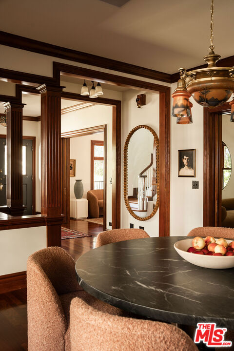 :: The Simpson Estate, 1909 :: Designed by a recipient of the City of Pasadena's Historic Preservation Award. A Pasadena Legacy Reimagined :: The Simpson Estate, 1909 :: This landmark property is a masterclass in architectural integrity and thoughtful restoration. Set on nearly 17,000 sq. ft. in the heart of Pasadena, the estate bridges more than a century of history with the comforts of modern living. From its origins as a family home in 1909when poultry and goats roamed the groundsto its careful century-later restoration, The Simpson Estate has been entrusted to dedicated stewards who safeguarded its soul while preparing it for future generations. Timeless Architecture, Modern Comfort Anchoring the property is a stately four-bedroom, four-bath main residence, reimagined with both grace and functionality. Grand entry bathed in natural light through custom double-pane Victorian-style windows. Original-style details intact include hardwood floors, handcrafted moldings, ornate fireplace mantle, decorative columns. Refined flow: media room/den, spacious formal living room, and elegant dining area. Chef's kitchen: Wolf range, Sub-Zero refrigerator, apron-front sink, prep island, vintage-inspired lighting, and custom cabinetry. Convenience: dedicated laundry/mudroom and a main-level guest suite. Upstairs, three bedrooms include a serene primary suite with dual walk-in closets, a spa-like bath with double vanities, vintage mirrors, and a soaking tub. Secondary bedrooms feature en-suite baths and generous closets. An accessible attic adds further storage. Expansive Grounds & Guest Residence The nearly half-acre lot offers a private outdoor retreat with room for a pool. At the rear, a detached 2-bedroom, 1-bath guest house with its own kitchen provides versatilityperfect for extended family, guests, an au pair, or additional income. Additional amenities include: Garage and carport, each with attic storage, Ample parking, Endless potential for outdoor living and entertaining A Rare Opportunity 1411 N. Los Robles is more than a homeit's a piece of Pasadena's cultural and architectural history. With its award-winning preservation, thoughtful modernization, and versatile compound layout, The Simpson Estate is a true legacy property, blending historic elegance with contemporary ease.