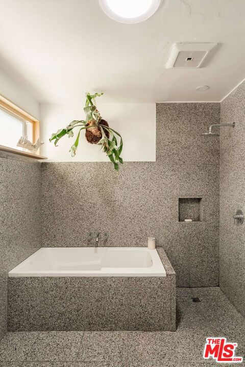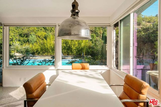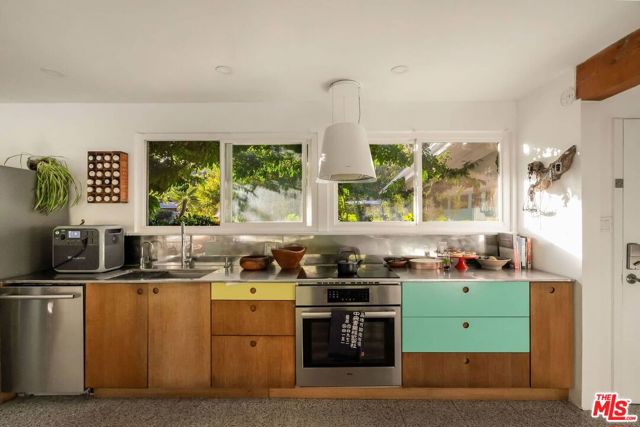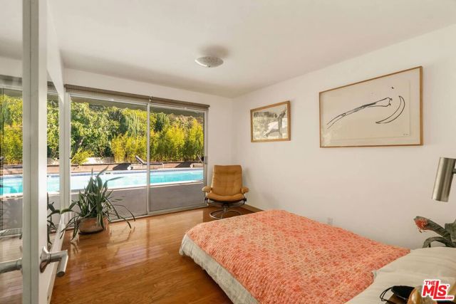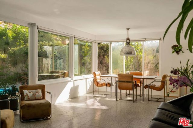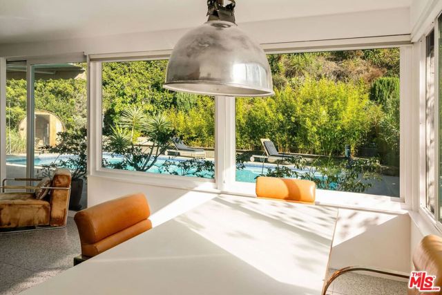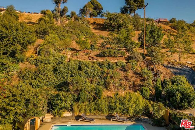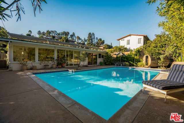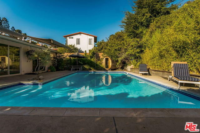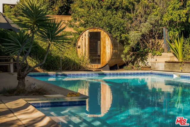 Nestled behind a veil of mature native greenery, this Mid-Century Modern ranch embodies the quiet sophistication of California's postwar design, where architecture and landscape exist in effortless dialogue. Thoughtfully restored to honor its original intent, the home balances authentic period character with a timeless refresh that feels both contemporary and enduring. At its heart, the kitchen celebrates the era's devotion to material integrity and craftsmanship, featuring a custom-fabricated " solid stainless-steel countertop, Elica appliances, and Reform cabinetry. Terrazzo tile extends throughout the home, providing visual cohesion and textural warmth, while glass sliding doors in both the living room and a bedroom open directly to the pool terrace, blurring the line between indoors and out. Outdoors, the residence reveals its tranquil rhythm: a private, bamboo-filled oasis anchored by a generous lap-sized pool, patio, and sauna nestled among California natives, complete with a private outdoor shower. The terraced hillside is planted with orange, lemon, avocado, kumquat, loquat, Pakistani mulberry, fig, and guava trees. A pathway leads to an upper terrace, ideal for sunset lounging, gardening, or creative retreat. The front garden, shaded by a mature mesquite, Desert Museum Palo Verdes, and another large fig, completes the home's connection to nature. Located within a neighborhood served by high-rated schools, this serene pocket of Monterey Hills offers proximity to DTLA, Pasadena, Highland Park, and Silver Lake, all within 1520 minutes. Beyond your door, Monterey Park's acclaimed culinary scene beckons, its "Where to Eat" guide celebrating the city's diverse Asian, American, and Latin offerings, along with nearby recreation at Edison Trails Park and Barnes Park.