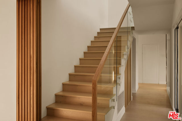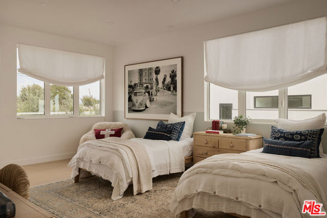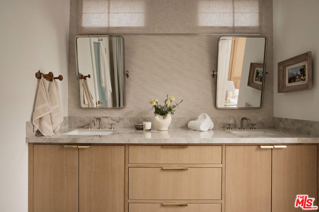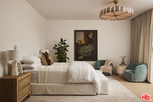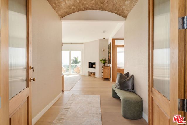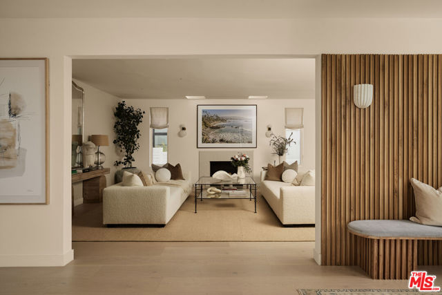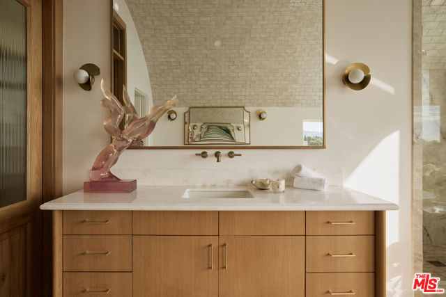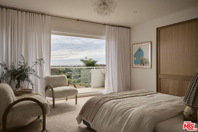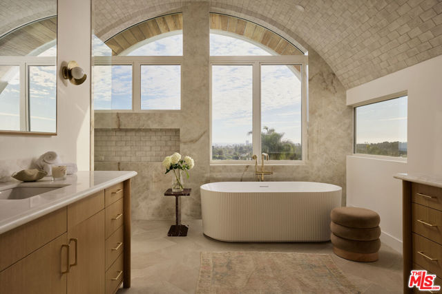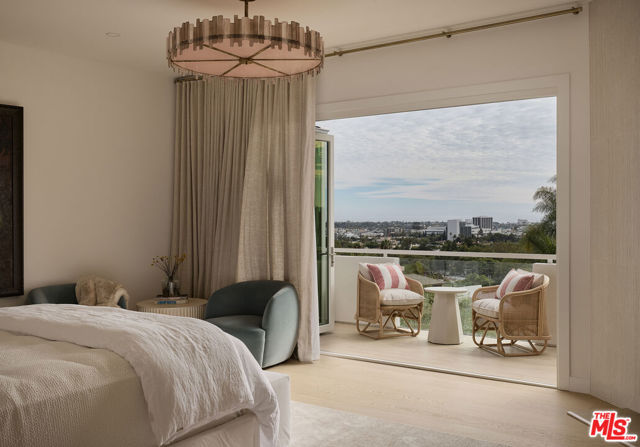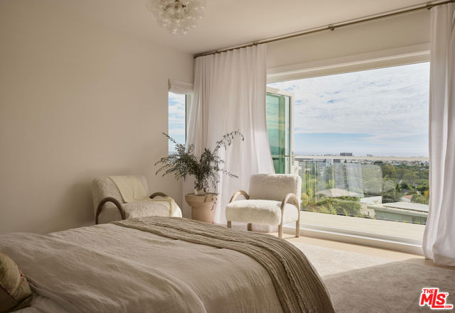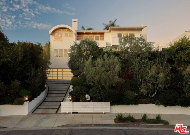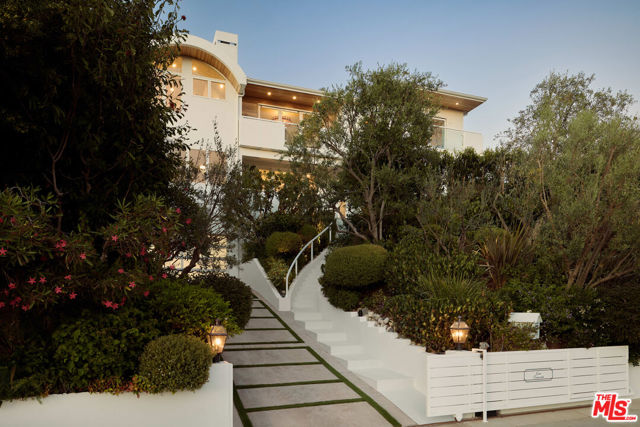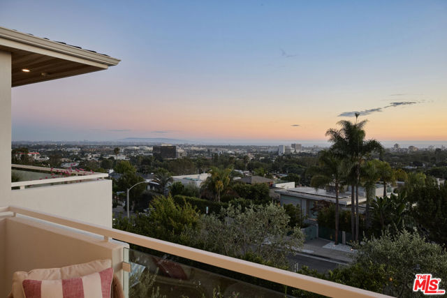 Perched at the highest point of Berkeley Street in Santa Monica, Casa Tramonto is more than a home - it's a story, an experience, and a retreat. From the moment you ascend the private driveway, a sense of calm takes over, carried by breathtaking views that capture both sunrise and sunset across the city, ocean, and mountains. Every detail of this reimagined estate speaks to thoughtful craftsmanship and timeless design. Local artisans built custom oak cabinetry and vanities throughout, paired with Kalista fixtures and an artful mix of natural stone, tile, and porcelain. Wide-plank white oak floors ground the interiors, while oversized oak doors with reeded glass and Rejuvenation hardware add character and warmth. Light floods through fully extendable glass doors, opening each room to balconies and breezes. Belgian linen dressings frame windows, and every bedroom offers a private moment among the trees. This home offers a highly functional layout with four bedrooms upstairs, one bedroom downstairs, and an additional office/den space perfect for work or a gym. The newly resurfaced exterior and refreshed landscaping bring the property into harmony with its setting, now surrounded by 60 mature trees and enhanced by thoughtfully updated lighting. The backyard is an invitation to linger - swim in the updated pool, unwind by the fountain, or simply soak in the serenity. Behind the beauty, modern systems provide peace of mind: two tankless water heaters, dual-zone HVAC, updated plumbing and electrical, and two laundry spaces. Designed by Lizabeth K. McGraw of Tumbleweed & Dandelion and built by American Valley Builders, Casa Tramonto is a rare work of art.
