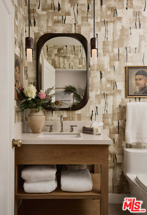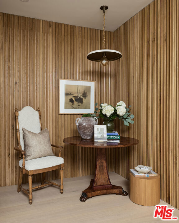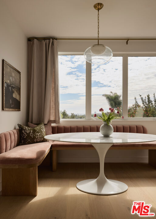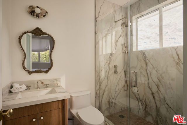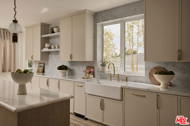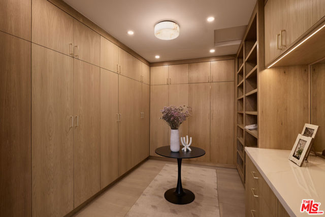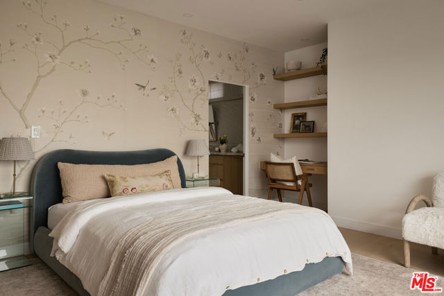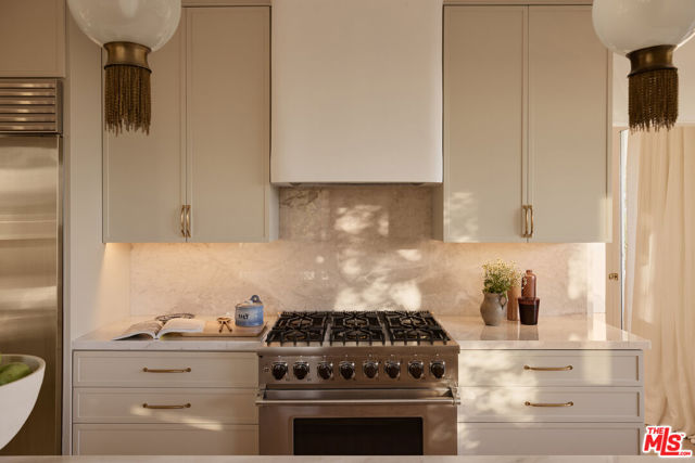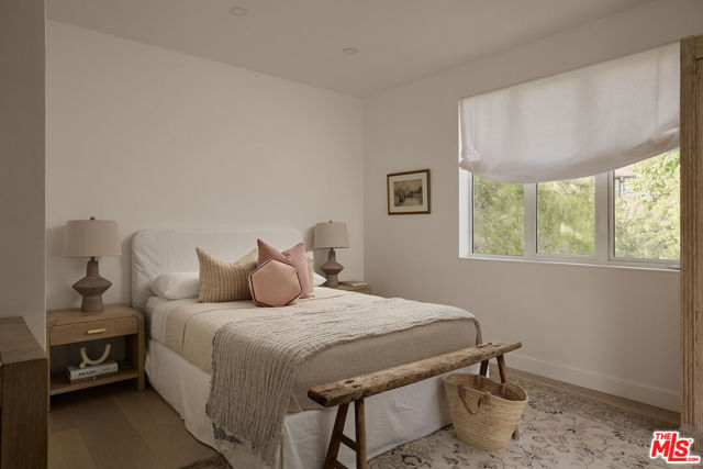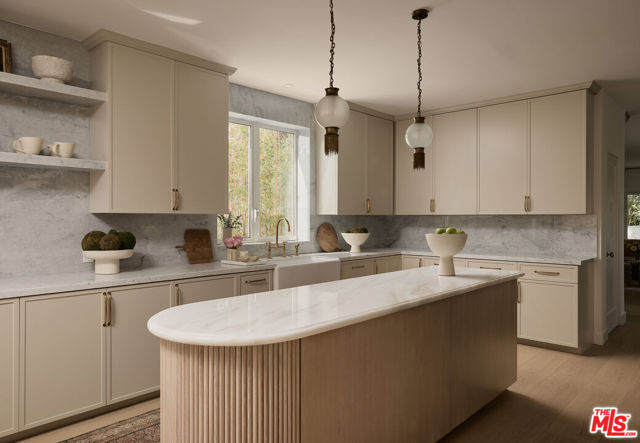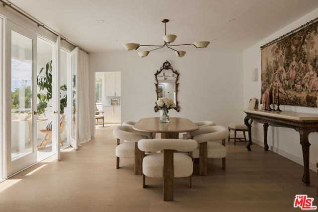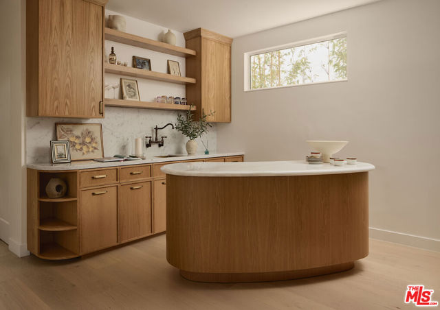Perched at the highest point of Berkeley Street in Santa Monica, Casa Tramonto is more than a home - it's a story, an experience, and a retreat. From the moment you ascend the private driveway, a sense of calm takes over, carried by breathtaking views that capture both sunrise and sunset across the city, ocean, and mountains. Every detail of this reimagined estate speaks to thoughtful craftsmanship and timeless design. Local artisans built custom oak cabinetry and vanities throughout, paired with Kalista fixtures and an artful mix of natural stone, tile, and porcelain. Wide-plank white oak floors ground the interiors, while oversized oak doors with reeded glass and Rejuvenation hardware add character and warmth. Light floods through fully extendable glass doors, opening each room to balconies and breezes. Belgian linen dressings frame windows, and every bedroom offers a private moment among the trees. This home offers a highly functional layout with four bedrooms upstairs, one bedroom downstairs, and an additional office/den space perfect for work or a gym. The newly resurfaced exterior and refreshed landscaping bring the property into harmony with its setting, now surrounded by 60 mature trees and enhanced by thoughtfully updated lighting. The backyard is an invitation to linger - swim in the updated pool, unwind by the fountain, or simply soak in the serenity. Behind the beauty, modern systems provide peace of mind: two tankless water heaters, dual-zone HVAC, updated plumbing and electrical, and two laundry spaces. Designed by Lizabeth K. McGraw of Tumbleweed & Dandelion and built by American Valley Builders, Casa Tramonto is a rare work of art.