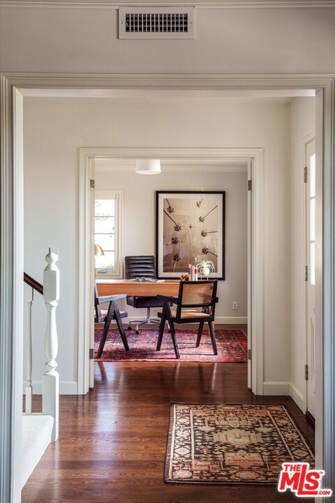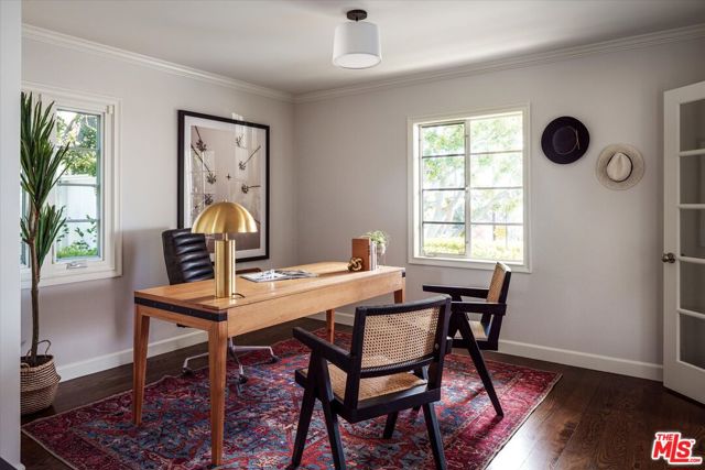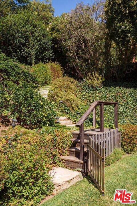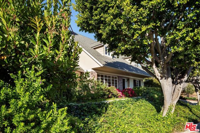 Welcome to 1100 Las Pulgas Place, a gorgeous traditional nestled at the entrance of a cul-de-sac in one of the most desirable neighborhoods. Situated on a private corner lot, this classic home offers a sensible floor plan with easy indoor/outdoor access to enjoy the verdant park-like grounds. Step inside the formal entryway and you'll find yourself in a large living room filled with natural light, rich hardwood floors and a brick fireplace. The spacious kitchen has an island with enough room for seating, a dining area and is connected to a den that opens up to the backyard and two patios, creating a space that is perfect for entertaining or informal gatherings. On the lower level, at the front of the house, there is also a roomy office which makes working from home an enticing option. Upstairs, perfectly laid out, you'll find the primary bedroom with ensuite bath and two walk-in closets as well as two additional bedrooms. In the back of the house, a flat grassy lawn extends out to a terraced slope with mature landscaping, citrus trees and a secret path. There is also a two-car garage with direct access to the house, which has been fully remediated and passed post-remediation testing. This is truly a timeless home that blends functionality, comfort and style - one that you won't want to miss.