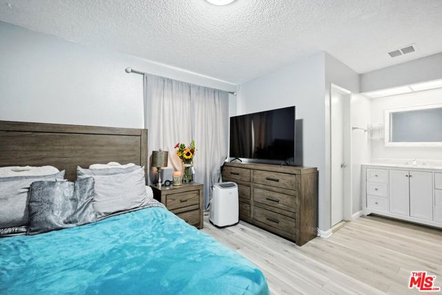 Welcome to this bright and beautifully updated two-story townhome in a quiet, gated community where there's no one above or below you, and every space feels open, private, and thoughtfully designed. From the moment you step inside, you're greeted by streams of natural light, warm tones, and a layout that's as functional as it is inviting. The main level offers a seamless open-concept living and dining area ideal for both relaxing evenings and effortless entertaining. The kitchen has been tastefully renovated with modern quartz countertops, clean-lined contemporary cabinetry, and a cozy breakfast nook that quickly becomes your favorite spot for morning coffee or catching up over a casual meal. Upstairs, you'll find two generously sized en-suite bedrooms, each with its own full bath, offering comfort and privacy for family or guests. The primary suite features soaring cathedral ceilings and dual closets, giving you extra breathing room and ample storage. An in-unit laundry area is conveniently located on the upper level, while a powder room on the main floor keeps guests comfortable without disturbing your private spaces above. Additional features include gated, tandem two-car parking located directly beneath the unit for maximum convenience, plus low HOA dues of just $275, both value and peace of mind. Perfectly situated for commuters, this home is just minutes from the 405 and 170 freeways, the Van Nuys Metrolink Station, and the shops, dining, and entertainment at NoHo West. Local parks and community amenities are also close by, adding even more to love about the location. This turnkey townhome checks every box: style, function, comfort, and location. Come see it for yourself and feel right at home.