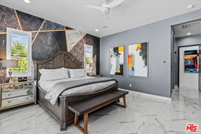 Welcome to 14 Merlot, located in a quiet pocket of Del Webb Rancho Mirage. Walking distance to the club house, where all the action takes place. This home is over 2500 sq ft of living space, it is an expanded version of the Journey model. When you arrive at this welcoming home, you see clean, detailed lines directing you to the fireplace in the living room and an outdoor oasis. The sparkling blue water pool is one of the longest in the community. It also has a spa and waterfalls. 2 Pergolas, covering the built in BBQ island outdoor kitchen. Inside the home, the kitchen is equipped with not one, but has 3 ovens, 2 full size and one convection. It is perfect for cooking your favorite meals. You will also see the largest Range from Kitchen Aid, stylish Quartz countertops throughout the home and backsplash in the kitchen. Ceramic tile flooring thought-out this home, the living room has a custom built in shelving with lighting, the home is pre-wired and a smart home. One of the most exciting things is the Premium stackable sliding doors, bring the outdoor in. Simply marvelous, as you enter the Primary bedroom, you see a second fireplace and an additional door to the outdoor playground. The spa like shower and large closet enhance the space. There is a casita/2nd bedroom has it's own entrance for your guests. The Office/den can be used as a 3rd bedroom. If you are looking for a home that is move-in ready, filled with the highest end of upgrades, this is it. There are 38 solar panels leased at $277.00/month. Do not miss this rare home.