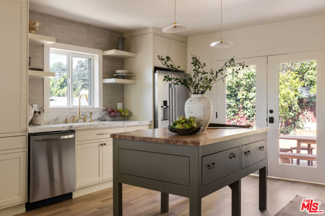 Private Gated Compound on 13,390 sqft lot with a Pool, Bonus Room & Mountain Views. At the end of a peaceful cul-de-sac, this fully re-imagined home sits on a private gated lot with a new large concrete driveway, meandering pathways, mature multi-level gardens and a sparkling pool framed by sweeping mountain vistas. Inside, expansive new windows, white-oak wood floors and warm organic finishes evoke a serene tree-house feel surrounded by greenery. The kitchen features custom built cabinets, a butcher-block island and Calacatta Viola marble countertops. Baths highlight Calacatta quartz, travertine and zellige tile, plus a spa-style wet-room primary bath with flagstone flooring and custom bead-board millwork in the primary bedroom. Extensive structural and mechanical upgrades include a newer roof, new windows, new exterior doors (including French doors off the primary suite and kitchen to an upper patio), new water lines throughout, new HVAC, new plumbing and electrical, . new stucco/paint, and native drought-tolerant landscaping. A large bonus room right off the pool l that can be used as a flex space. OFFERS DUE WEDNESDAY 11/5/25 at 8pm!
