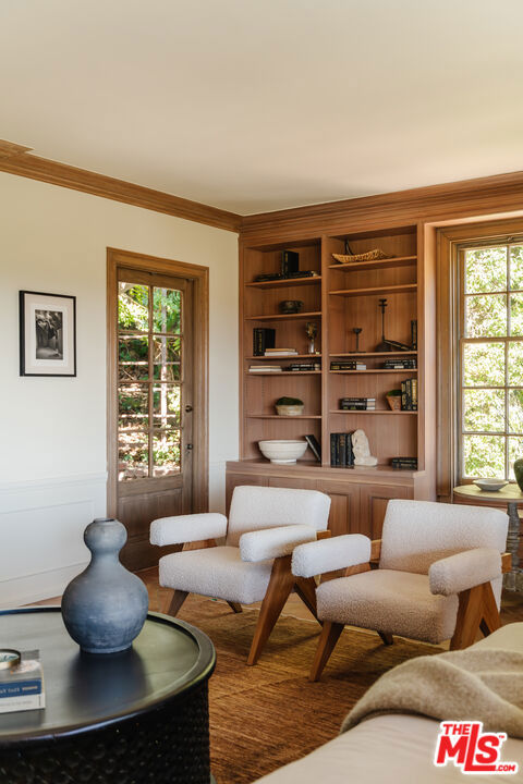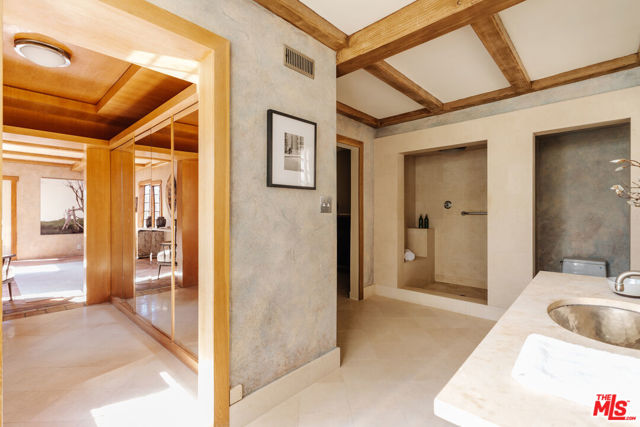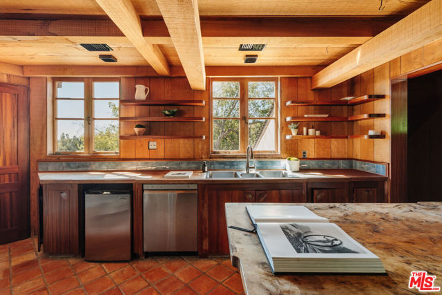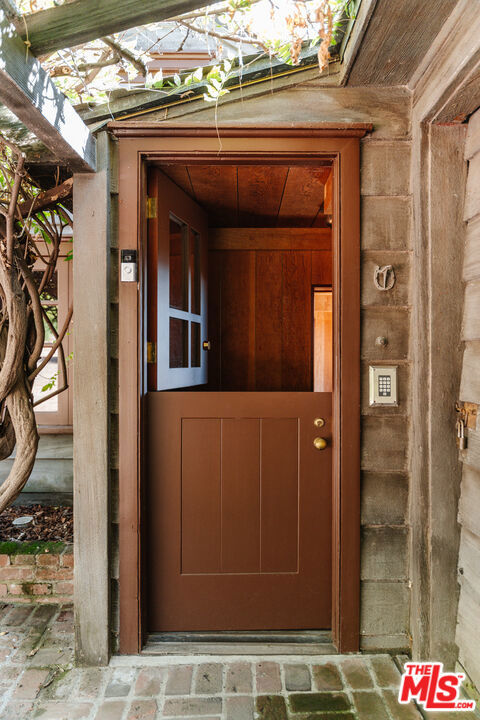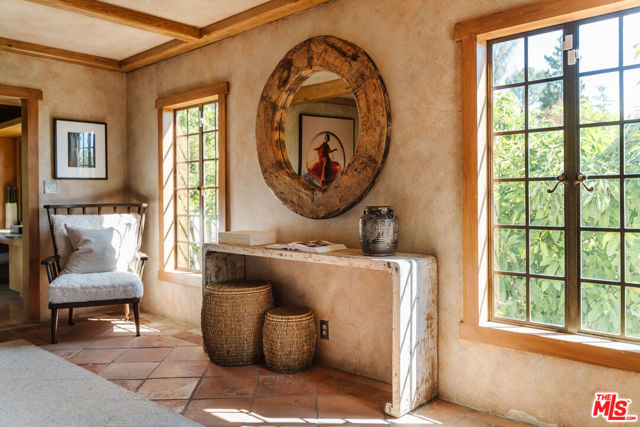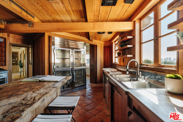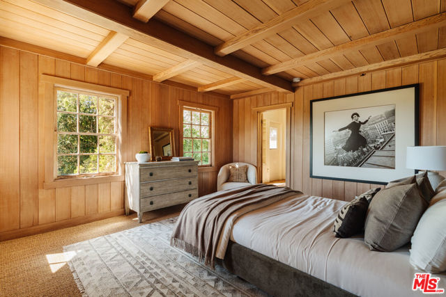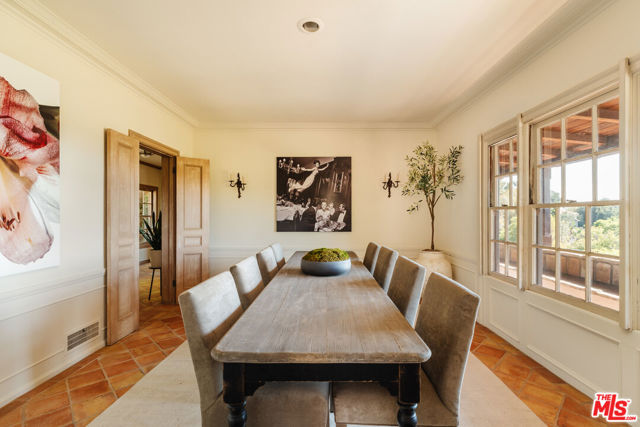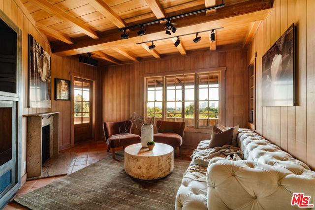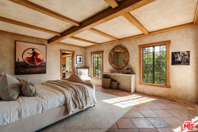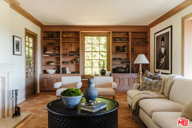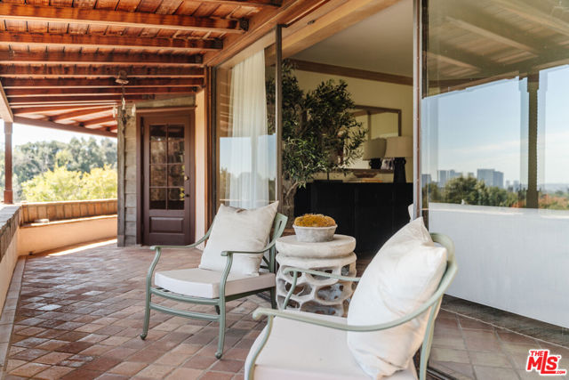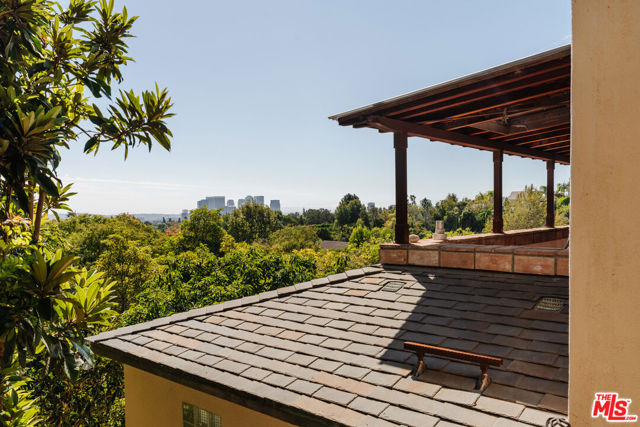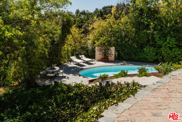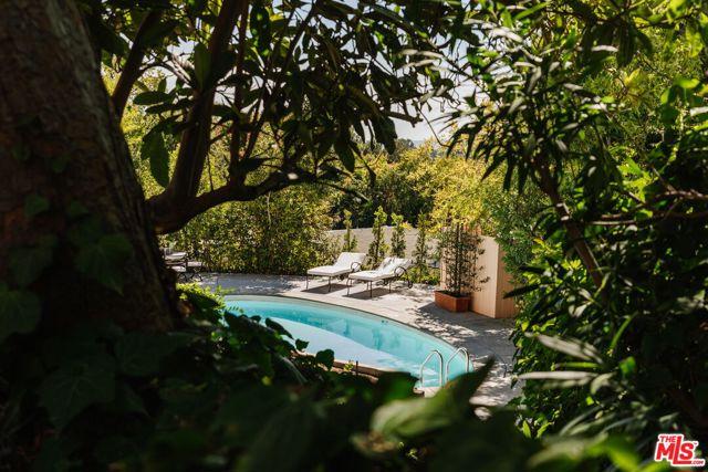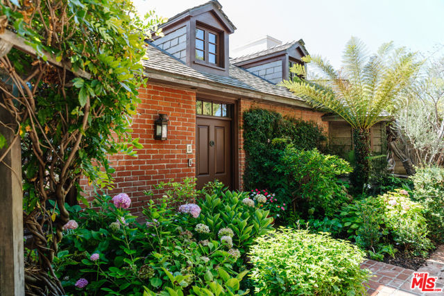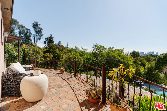 Nestled at the end of a quiet cul-de-sac north of Sunset Boulevard, this one-of-a-kind Country Colonial Revival estate embodies Beverly Hills charm, privacy, and history. Originally built in 1939 and set behind gates on a rare promontory lot of approximately 18,853 square feet, this enchanting property offers sweeping views of the Century City skyline and a serene, lush garden setting.A long brick-paved driveway leads to the 3,411-square-foot residence, offering 5 bedrooms and 4 baths. This magical retreat was the personal estate and creative studio of iconic fashion photographer Melvin Sokolsky for nearly 50 years. Its provenance and character shine throughout from the handcrafted brick facade to rich interiors featuring imported Sotios tiles from Mexico, wood-beamed ceilings, and classic French tile flooring on the lower level. A gracious foyer introduces the main living spaces: an elegant living room with fireplace and built-ins, a warm media/sitting room, a formal dining room, and a rustic farmhouse kitchen appointed with a Garland range, Traulsen commercial refrigerator, LG dishwasher, artisanal wood counters, and open shelving. French doors and picture windows frame greenery and city vistas, flowing out to an expansive wraparound deck for effortless indoor-outdoor living. The lower level serves as the bedroom wing, anchored by a serene primary suite with dressing area and garden access, along with additional secondary bedrooms. This level also features a cozy library, mud room, and generous storage designed for day-to-day functionality while preserving privacy and tranquility. Sotios tiles, classic French tile floors, wood-beamed ceilings, two fireplaces, and brick hardscape underscore the timeless character and warmth of the home. The rear grounds offer a tranquil outdoor oasis, with multiple lounging and entertaining areas surrounded by mature landscaping and dramatic views. A sparkling pool and sun deck are perfectly positioned to capture the natural beauty of the hillside setting ideal for hosting gatherings or enjoying quiet moments under the California sun. Just moments from world-class dining and luxury shopping on Rodeo Drive, this gated Beverly Hills sanctuary offers privacy, pedigree, and an unparalleled address. Whether cherished as-is or reimagined into a new legacy estate, 1277 Leona Drive represents a rare opportunity in one of the most exclusive neighborhoods in the world.
