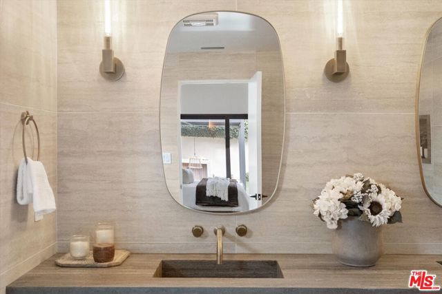 Fully rebuilt, single-story Mediterranean Modern tucked in one of Sherman Oaks' most sought-after pockets of Chandler Estates! This 3 bedroom, 3.5 bathroom home was taken down to the studs and completely reimagined with today's luxury buyer in mind. Every detail has been upgraded including all new electrical, plumbing, drywall, HVAC, roofing, doors, windows and high-end designer finishes throughout. The exterior showcases authentic Jerusalem stone, while inside, soaring vaulted ceilings, Burton Way hardwood floors, and oversized windows flood the open floor plan with natural light, creating an airy, modern aesthetic. The chef's kitchen features Taj Mahal quartzite countertops, custom whitewashed Santa Barbara rift oak cabinetry with dark walnut accents in the primary suite, all crafted with Blum soft-close mechanisms, European hinges, and undercount tandem slides, with premium Thermador appliances. Each sizable bedroom includes its own ensuite bathroom, finished with travertine stone, Venetian plaster walls, and a standout green travertine powder room. Additional upgrades include side by side LG washer/dryer, Sonos surround system, Starlink WiFi built into the home, Amazon smart tablet control panel, Ring doorbell, EV charging capabilities and built-in security cameras for modern convenience and peace of mind. The entertainer's backyard is your private oasis complete with an outdoor kitchen, wine fridge, built-in BBQ, and covered lounge surrounded by lush, low-maintenance landscaping. Turnkey, timeless, and truly one of a kind.