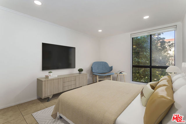 Located in Doheny Terrace, one of West Hollywood's most amenity-rich condominium buildings, this spacious 1,257 sq.ft. 2BR/2BA condo sits at the back of the complex with a large private balcony offering ample outdoor space. Inside, the unit features hardwood floors throughout, a living room with a fireplace and wet bar, motorized blinds, and plenty of closet space. The layout includes a generous primary suite with an en-suite bath and ample storage, plus a well-sized second bedroom and an adjacent full bathroom. The kitchen has Travertine countertops and flooring and connects to the dining area. A breakfast bar area provides additional functionality. Newer windows throughout and a newer Fleetwood sliding glass door. The unit has been freshly painted along with newly-installed LED lighting in the bedrooms. The building, which sits in the highly sought after Norma Triangle, has amenities including a sparkling pool, sauna, gym, and laundry facility (in-unit laundry can be ADDED with HOA approval). Just blocks from the Sunset Strip, Beverly Hills, and the best of WeHo's dining, shopping, and nightlife. 2 gated side-by-side parking spaces (near an elevator) and low HOA dues of $682.40/mo., which includes earthquake insurance for the building. Seller to pay pending assessment, which is $87/mo. for current building improvements. Photos are virtually staged.