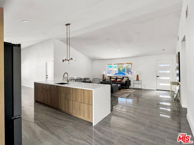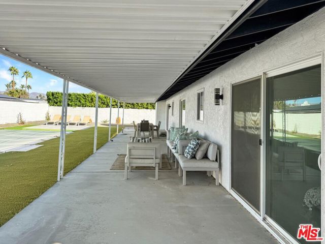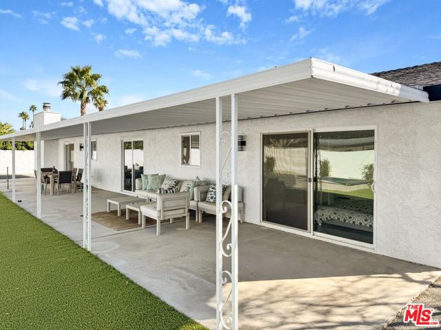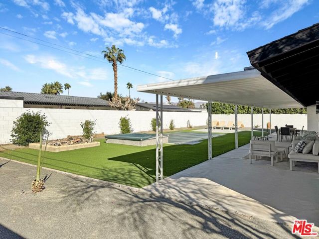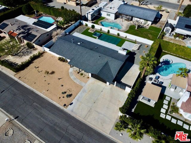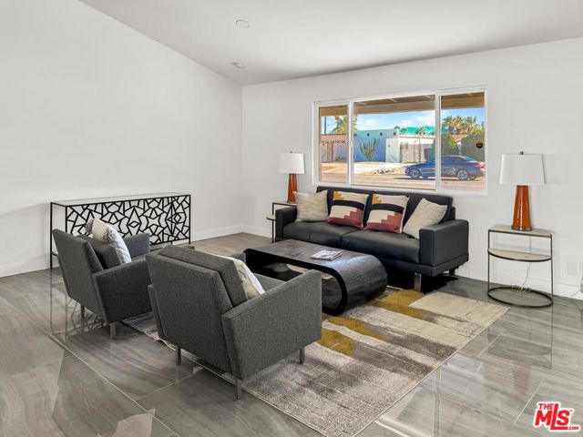 Searching for a home that offers an effortless indoor-outdoor lifestyle? This fully renovated 3-bedroom, 2-bath Palm Springs retreat delivers with its sleek design, luminous tile flooring, and vaulted ceilings that elevate every room! Out front, desert landscaping sets a clean, modern tone, while inside, sunlight spills through expansive windows into a layout configured for connection and comfort. The open-concept living room flows seamlessly into a striking kitchen with a multi-seat island, ideal for everything from morning coffee to weekend gatherings. Two tranquil bedrooms share a hall bath with dual sinks and an oversized, frameless walk-in shower. Your primary suite feels like a personal sanctuary, offering outside access, generous closets, and a spa-inspired ensuite. Venture out to a covered patio and low-maintenance backyard centered around a cooling pool and spa that's ready for evenings under the stars. Perks include RV parking, an attached 2-car garage, and proximity to Escena Golf Club, I-10, and local shopping. Come explore the best of Palm Springs, Rancho Mirage, and Coachella from your own contemporary oasis!