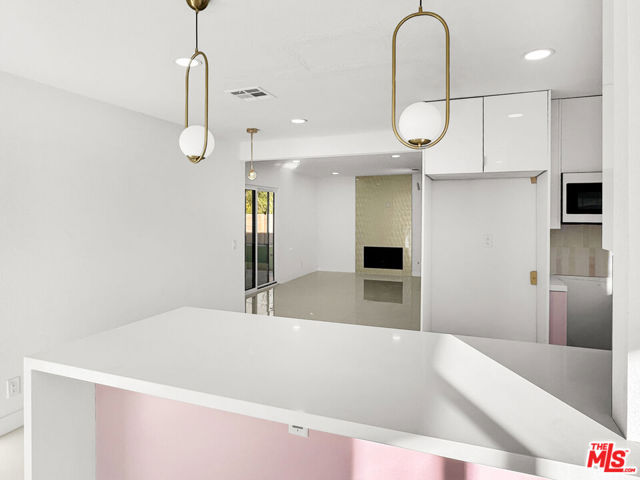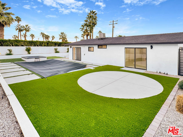Searching for a desert retreat that felt like a work of art? In Palm Springs' coveted Desert Park Estates, this recently renovated 3-bedroom, 2-bath residence offers bold contemporary design, luxury finishes, and a resort-style backyard, all on a quarter-acre lot! Wrapped in smooth stucco, the home reveals a sleek open-concept interior where a golden-flaked floor-to-ceiling fireplace commands attention in the living room. The kitchen dazzles with Caf appliances and a one-of-a-kind backsplash that shifts color like a hologram in the abundant natural light. Both baths are magazine-worthy, featuring terrazzo tile, including in the primary suite's dramatic walk-in shower with gleaming gold accents. Outside, imagine teeing off on your personal putting green or cooling off in a brand new pool and spa, surrounded by freshly landscaped grounds and zero-maintenance turf. With a modern garage door, expansive covered patio, new HVAC, and custom tile flooring, every upgrade was made with intention. Located just minutes from downtown shops, dining, and I-10 access, this stunning showpiece invites you to live like every day is a vacation!