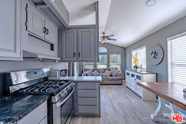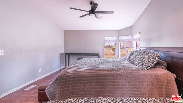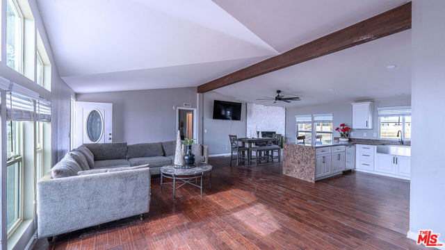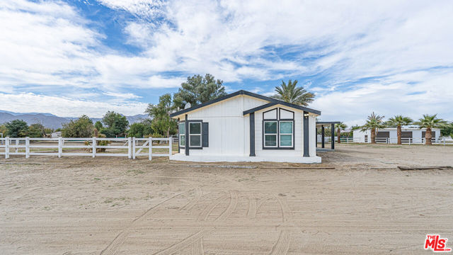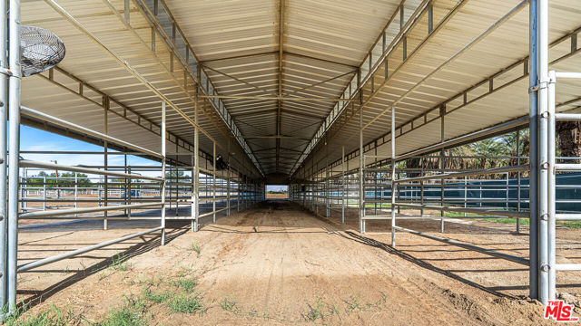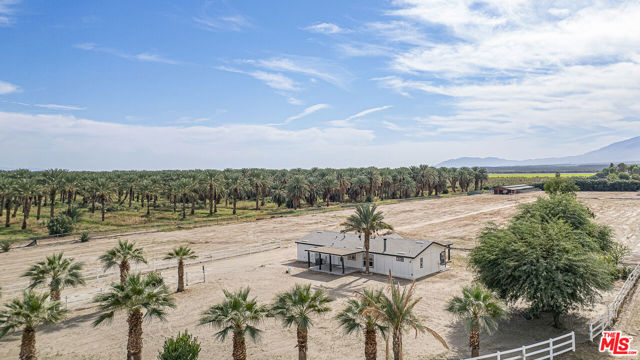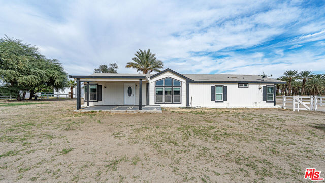Beautiful gated 10-acre ranch backing up to Deer Creek Equestrian Center, featuring two professional barns offering a combined total of 40 oversized 12x24 stalls, covered stalls with misting systems, fans at each stall, wide center aisles, multiple fenced paddocks lining the entry drive, two large tack rooms per barn, an exercise track, a 3-stall maintenance shop, office trailer, and ranch-hand quarters. The fully permitted (433) manufactured home has been meticulously remodeled with an open floor plan, vaulted ceilings, wood floors, a stone fireplace, and a chef's kitchen with custom cabinets, Cambria counters, custom lighting, and stainless appliances. The primary suite includes a spacious walk-in closet, abundant natural light, and an upgraded bath with dual sinks and a large glass shower. Additional property features include a large well with strong water output, 5000-gallon water storage, two septic systems, city water availability, 62nd Street easement access, a concrete pad for a patio, an approx. 1,800 sq. ft. movable garage.