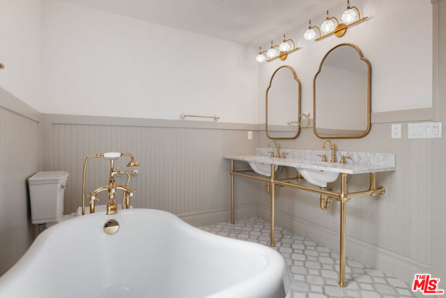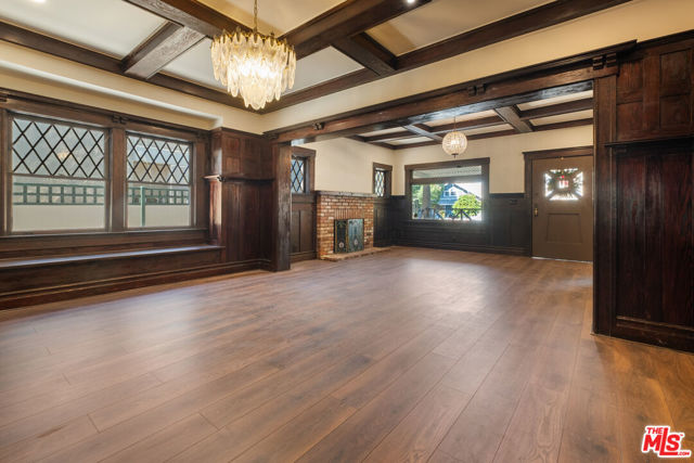 Step back in time to 1909 Los Angeles, when the city was rapidly transforming from a western outpost into a thriving metropolis. Streetcars stretched across new boulevards, early film studios were taking shape, and new residents sought beautifully crafted homes along expanding transit lines. Built during this dynamic era, this classic Craftsman home in Jefferson Park reflects the architectural ideals that defined early 20th-century Southern California living: simplicity, artistry, and a seamless connection to nature. The home features a welcoming front porch beneath a low-pitched gabled roof, an iconic Craftsman hallmark, supported by tapered columns on sturdy masonry bases. Wide eaves with exposed rafter tails, wood siding, and grouped multi-pane windows highlight the period's commitment to hand-crafted detail. Inside, beautifully restored original woodwork, a decorative fireplace, built-in cabinetry with leaded stained glass and coffered ceilings, lend the living and dining rooms a warm, timeless elegance. The gourmet kitchen invites gatherings around a quartzite island as the home chef moves and grooves between top-of-the-line appliances. Every detail was considered from illuminated shelving and appliance garages to the farm-style sink, pot filler, pantry shelving, and abundant storage. Custom white oak cabinetry gives the space a comfortable, airy sophistication. When it's time to unwind, follow the wainscoted hallway to a serene bedroom retreat featuring a dream walk-in closet, thoughtful lighting, and a spa-like bathroom with a dual vanity, oversized shower, and standalone tub accented by gold fixtures and a gleaming chandelier. Two additional bedrooms complement the home, along with a stylish guest bathroom located in the mudroom/laundry area with access to the low-maintenance backyard. A detached bonus structure, once likely a carriage house, now serves as a versatile office or studio with finished walls and recessed lighting. The property is fenced with gated parking for multiple vehicles, plus a driveway space. Modern upgrades include solar panels, a tankless water heater, central air and heat, a pull-down attic staircase, and a classic California basement. This 1909 Craftsman not only offers exquisite design and modern comfort but stands as a living piece of Los Angeles history...built at a pivotal moment when Jefferson Park was helping shape the city's early identity and architectural legacy. This listing is located within the Jefferson Park Historical Preservation Overlay Zone HPOZ.
