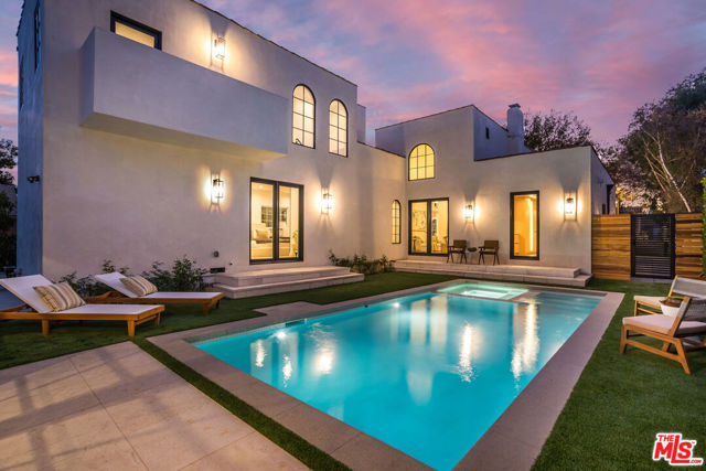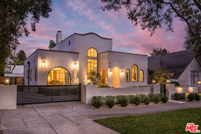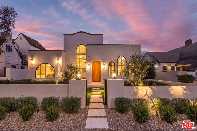 On a coveted Beverly Hills street, this beautifully renewed Spanish residence welcomes you with luminous natural light and majestic, high ceilings. Inside, the home's original Spanish allure unfolds throughout, showcasing thoughtful details from graceful arched windows to a sculpted fireplace that enhances the property's elegant architectural curves. The chef's kitchen is equipped with new stainless steel appliances and sophisticated finishes that support both everyday living and effortless entertaining. The primary suite is a serene sanctuary, with a generous walk-in closet, a luxurious standalone tub, and French doors opening directly to the backyard and resort-style pool. Airy, cheerful rooms transition seamlessly to outdoor spaces designed for leisure and social gatherings. A private guest house with its own kitchen and bath adds exceptional flexibility as a fifth bedroom, creative studio, or welcoming space for extended guests. Radiant with character, abundant light, peaceful ambiance, and genuinely comfortable design, this home embodies exceptional value in a truly desirable location.