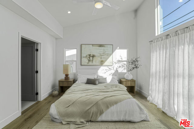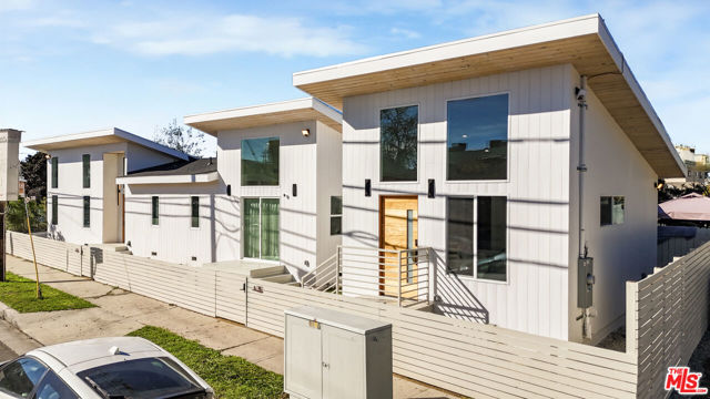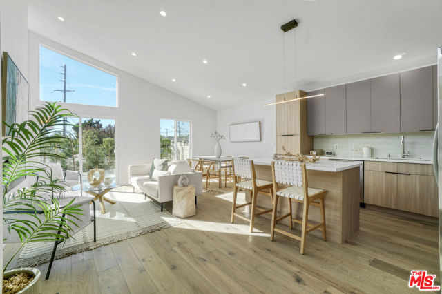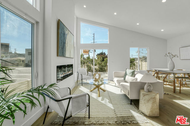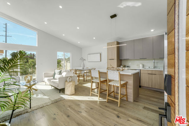 This refined Silicon Beach home with a companion guest house offers a rare sense of tranquility and flexible modern living. Sunlight pours through soaring 16-foot ceilings, creating an airy, voluminous feel throughout the open living spaces, primary suite, and ADU. Light woods and organic textures pair beautifully with the home's warm Japandi aesthetic, blending contemporary design with natural harmony. The main residence features two spacious bedrooms plus an office nook and two thoughtfully designed bathrooms. Living and dining areas flow seamlessly around a sleek modern fireplace, opening through sliding glass doors to a deck prepped for an optional recessed hot tub. Each bathroom delivers sublime luxury with curated materials, rainfall showerheads, and separate hand showers. The ADU mirrors the home's refined scale and design, ideal for extended family, rental income, or a private creative retreat. Its generous proportions make it perfect for a wellness studio or work-from-home sanctuary, offering both inspiration and privacy. Every bedroom includes a walk-in closet, and smart-home features cameras, keyless entry, and Wi-Fi switches provide effortless everyday living. As an investment, furnished mid-term rental potential for both units is estimated at $10-$13,000 per month, while owner-users can generate approximately $3,000+ monthly from the ADU alone. Nestled in the heart of Silicon Beach, adjacent to Playa Vista and just minutes from the ocean, 11959 Juniette Street offers easy permit parking, convenient access to bike paths, beach, shopping, cafes, and the best of coastal Westside living. Welcome home.