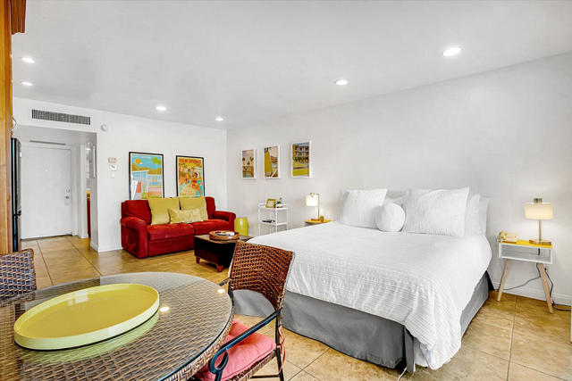 Step into resort living with this ground-level, 432 sq. ft. studio condo in the heart of Palm Desert. Located just blocks from El Paseo, the 'Rodeo Drive of the Desert' you'll be surrounded by world-class boutiques, fine dining, and lively entertainment. Fully furnished, this home is effortless as a weekend desert escape or a ready-to-go rental property. At Shadow Mountain Resort, every day feels like vacation. Since 1946, this iconic destination has been where athletes, socialites, and desert lovers gather. For tennis, pickleball, and padel enthusiasts, it's a paradise with 14 championship courts, 3 clay courts, 6 lighted courts, and 7 pickleball courts. With clinics, private lessons, and a pro shop stocked with the latest gear, this is the place to sharpen your game and join a vibrant community of players. Golfers will love being in the heart of the Coachella Valley, minutes away from some of the country's most celebrated courses. After a morning round, come home to a dip in the legendary 130-foot figure-8 pool, cool off in one of three smaller saltwater pools, or ease tired muscles in the whirlpool spas and saunas. If shopping is your sport, luxury is just around the corner with Hermes, Gucci, Saks Fifth Avenue, The Apple Store, and dozens of fine dining restaurants and hip boutiques on El Paseo. When you're ready to relax, dine poolside at Above the Eight Restaurant & Bar with fresh seasonal fare and sweeping resort views. Quarterly HOA dues make life simple by covering all utilities; electricity, water, Wi-Fi, cable, and internet. Your time can be spent enjoying the desert, not managing bills. This is your opportunity to own a piece of mid-century modern history in a community built for recreation, relaxation, and refined living. The property unit number is 18. The resort's door number is 135.