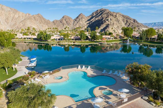 Welcome to Laguna De La Paz, a prestigious guard-gated community in the heart of La Quinta, where luxury and tranquility blend seamlessly. This beautifully renovated three-bedroom, two-and-a-half-bathroom residence offers an inviting and sophisticated retreat, featuring an open and airy layout designed for both comfort and entertaining.Every detail has been thoughtfully curated, from the elegant large-format porcelain tile flooring throughout to the separate den/office conveniently located off the kitchen. The light-filled living spaces include a cozy fireplace for cool desert evenings and an abundance of storage. The well-designed floor plan ensures privacy, with the primary suite tucked away from the guest bedrooms. Custom closet organizers enhance each bedroom, while fully renovated, spa-inspired bathrooms exude modern elegance. A thoughtfully added quarter bath and a relocated stackable laundry enhance convenience without sacrificing space.Seamlessly blending indoor and outdoor living, this home features multiple areas for entertaining and relaxation. A custom-built BBQ and expansive patio set the stage for al fresco dining, while a firepit offers the perfect setting to gather with family and friends and take in the breathtaking desert sunsets.Laguna De La Paz offers an unparalleled lifestyle with resort-style amenities, including 15 pools, 16 spas, five tennis courts, a five-acre lake with an electric boat and paddle boats, a state-of-the-art fitness center, and a clubhouse designed for social gatherings and events. Perfectly positioned just minutes from world-class golf, tennis, pickleball, hiking, dining, and entertainment--including the renowned La Quinta Resort, La Quinta Country Club, and the new Acrisure Arena--this is a rare opportunity to embrace the very best of desert luxury living.