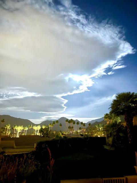 Exceptional Detached Condo, Skyview Villa Plan, 2,439 sq. ft., situated on an elevated lot stunning views, 2 primary bedrooms that have private bathrooms. Bedroom 3 is currently set up as a bonus room (pictures 31-35) with a soon to be operable size window (operable window on order) with a closet. There is ample natural light that offers the elegance and privacy ideal for a thrid bedroom/guest room, study, or serene personal escape with beautiful mountain views. Main primary suite offers direct patio access, two generous closets, and a newly remodeled en-suite bathroom.This beautifully appointed villa offers timeless design, exceptional finishes, and a highly desirable floor plan. Enjoy panoramic views of Eisenhower Mountain to the East, dramatic North-facing vistas of the mountains and sparkling city lights at night, Western skies that capture every desert sunset.Enter through elegant double glass doors into a spacious, expanded entryway. The great room features a soaring wood-paneled vaulted ceiling, a dramatic decorative stone fireplace, and custom windows that bring the desert's ever-changing light into the heart of the home. The expansive patio offers the perfect place to enjoy the serenity of sunrise and sunsets with, spectacular moonrises, and everything in between. The thoughtfully designed living room includes multiple seating areas, ideal for both intimate gatherings and large-scale entertaining. Additional highlights include a temperature-controlled wine room, two-car garage plus a dedicated golf cart garage.Furniture and Golf cart with lithium batteries are for sale outside of purchase prince. Ironwood Country Club is one of the most sought-after private clubs in the Coachella Valley, offering two 18-hole golf courses, a state-of-the-art Fitness Center, tennis and pickleball courts, a full-service spa, and a welcoming social atmosphere. Membership is by application and sponsorship. This is a rare opportunity to own a truly special home in one of the desert's premier communities.