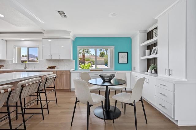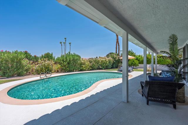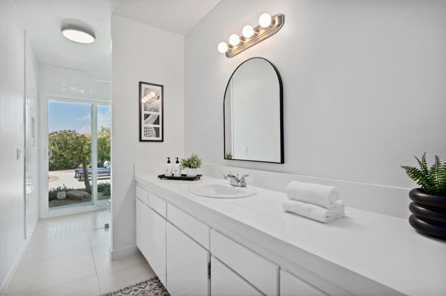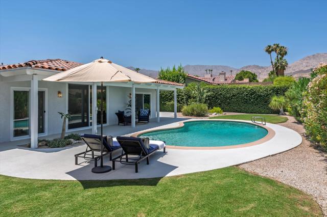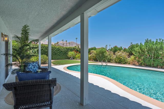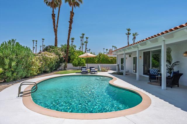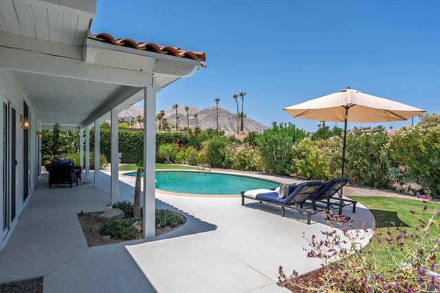 Modern comfort meets desert luxury in this stylishly updated 3-bedroom, 2-bath home, impeccably upgraded and thoughtfully reimagined to offer a seamless blend of contemporary design and timeless desert charm. Situated on a sprawling lot with mountain views, a sparkling pool, and approved plans for a detached casita, this property is move-in ready with exceptional potential for future expansion.Step inside to discover a space where every detail has been carefully curated. From the inviting custom laminate wood-paneled entry wall to the wide-plank flooring, tall baseboards, and sleek recessed lighting -- the home exudes a refined, cohesive elegance throughout.The fully reimagined kitchen is a true centerpiece, featuring custom cabinetry, quartz countertops, full designer backsplash, and stainless steel appliances. Thoughtful built-ins near the dining area offer both beauty and function, elevating everyday living.Designed with flexibility in mind, the open-concept layout offers multiple living spaces that flow effortlessly to the outdoors. Large sliding glass doors frame picturesque views and make indoor-outdoor entertaining a breeze -- whether you're hosting friends poolside or enjoying a quiet night in.The spacious primary suite is a private haven, complete with direct backyard access, a walk-in closet, and a beautifully renovated en suite bath with designer finishes. Two additional bedrooms and a second updated bathroom offer ideal accommodations for guests, a home office, or creative pursuits. Guest bathroom also offers convenient access from the pool -- perfect after a swim.Outside, the landscaped backyard is a private oasis with citrus trees, lush greenery, and plenty of room to relax or entertain. The approved architectural plans for a detached casita with its own bedroom, bathroom, and kitchenette add significant value and flexibility -- ideal for guest stays, multi-generational living, or added rental income.Additional upgrades include a two-car garage with epoxy flooring, an electric vehicle charger, and custom blackout blinds throughout for comfort and privacy.Ideally located just minutes from the shops and dining of El Paseo.