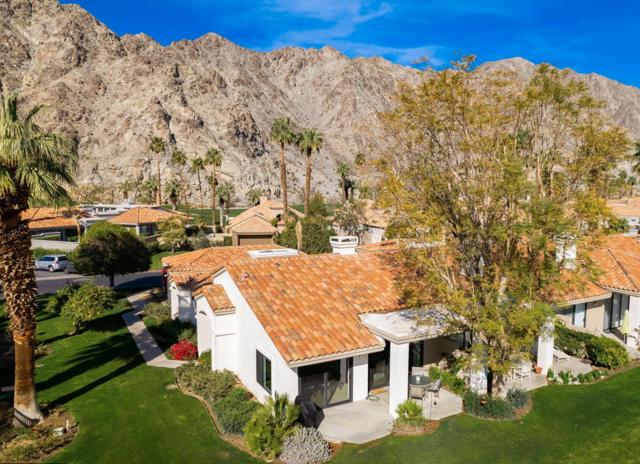 Welcome to this beautifully updated 3-bedroom, 2-bathroom home with breathtaking mountain views and a prime location right next to the pool! Located on hole #11 on the famed Arnold Palmer Private course, this light and bright unit has been completely refreshed with brand new dual-pane windows and patio doors, fresh interior paint, and a brand new A/C unit for year-round comfort and efficiency. The renovated kitchen features sleek new stainless steel appliances, and modern cabinetry--perfect for any home chef. Open-concept living room with fireplace and dining area flow effortlessly, offering a warm and inviting space to relax or entertain. Additional updates include upgraded bathroom countertops, ample closet space. The 3rd bedroom with closet is currently being used as a den with sleeper sofa. Step outside to your private patio and soak in the serene golf course backdrop.Pga West has it all with 6 golf courses, pickleball, fitness center and more. The HOA includes all landscaping, internet, cable, paint, earthquake insurance, roof, security and trash. This very popular Champion 3 floor plan is move-in ready with all the updates done for you!