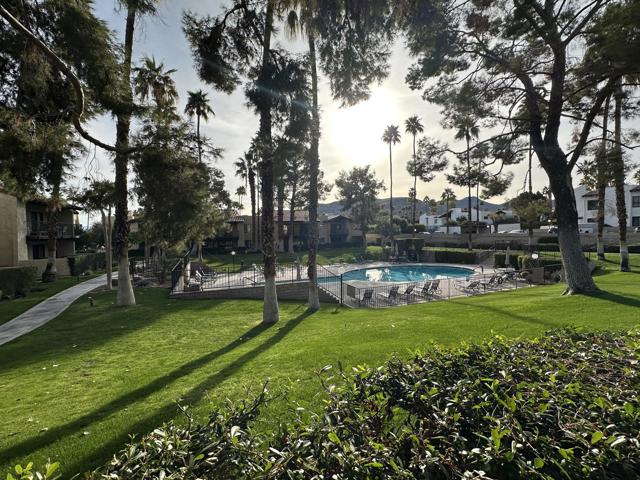 Tucked away in the desirable south end of Palm Springs, this beautifully updated ground-level condo offers privacy, comfort, and resort-style amenities. Featuring dual primary suites--each with its own private bath--this layout is ideal for guests or shared living. Enjoy numerous upgrades including a new A/C unit, new hot water heater, all-new dual-pane windows and patio slider, ceiling fans, fresh interior paint, and enhanced electrical panel. The kitchen and bathrooms have been tastefully remodeled with modern finishes, offering both functionality and style. Step outside to your private back patio with low-maintenance desert landscaping with an elevated sweeping view of the open greenbelt, stunning mountains, and the nearby community pool. The HOA provides a wealth of amenities including: 6 tennis courts, 3 pools & 4 spas, fitness center, clubhouse, library, and community gathering space. The HOA fees also include exterior maintenance, common area landscaping, water, trash, gas, insurance. Located just minutes from downtown Palm Springs, popular hiking trails, world-class dining, shopping, entertainment, and golf.