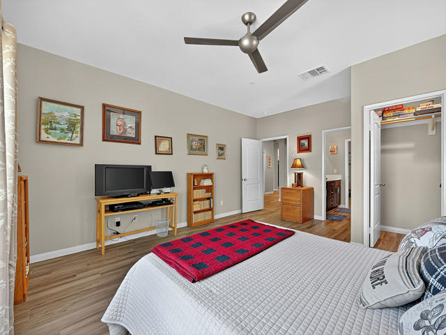 LOW INTEREST ASSUMABLE LOAN at 3.125% option on this 2018 custom built home in gated community. Golf access at Mission Lakes Country Club, Over $38,000 in BUILDER UPGRADES. 6'x36' ceramic tile flooring throughout, all grey color. Large bedrooms, hallways and Great room!Built-in wine frig, in kitchen.Shows like a model home. Easy access with highly sought after floor plan.Original Owners.Must see to appreciate!