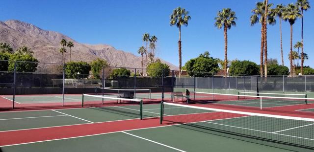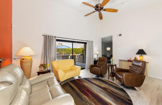 Classic Mid-Century Wexler Design--Now with a $15,100 Price Reduction!Step into timeless Palm Springs living with this iconic Donald Wexler-designed three-bedroom bungalow in the highly sought-after Rose Garden complex--just blocks from downtown. This ground-level home welcomes you with an enclosed atrium featuring new wood deck flooring, abundant natural light, and newer double-pane sliders and windows. Inside, enjoy a designer kitchen with wood cabinetry, granite countertops, and new appliances. Tile flooring flows throughout, complemented by vaulted ceilings in the living room and a large slider framing stunning mountain views. The rare, oversized backyard patio extends the living space and is fully enclosed, making it perfect for pets and private outdoor entertaining.The spacious primary suite is joined by two additional bedrooms and updated baths, with only two shared walls for added privacy. A one-car garage includes a newer furnace, AC, and water heater. Turnkey furnishings are included for a seamless move-in. The Rose Garden offers manicured grounds, two pools, three spas, and a vibrant pickleball scene with four dedicated courts, plus tennis and mixed-use courts. Located near shopping, dining, groceries, coffee shops, the Mizell Senior Center, and parks--this central location is unbeatable. This home is an exceptional value compared to nearby complexes. The same floorplan at 300 Tiffany Circle East, located on the same street, closed for $754,000 on June 20th--making this a rare opportunity to own a Wexler-designed gem at a compelling price. Act now--homes in this complex don't last long at this price. Whether you're seeking a full-time residence or a seasonal retreat, this property offers the perfect blend of style, comfort, and community.