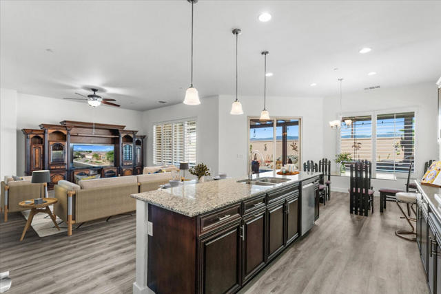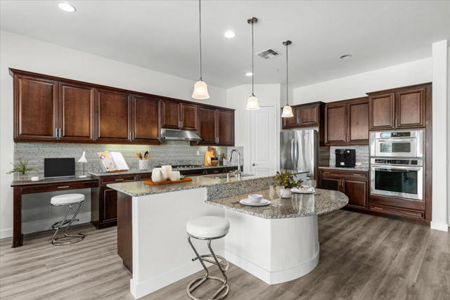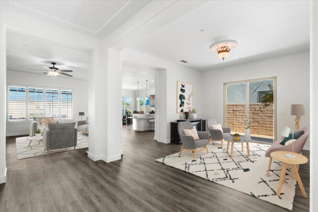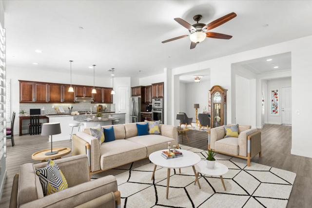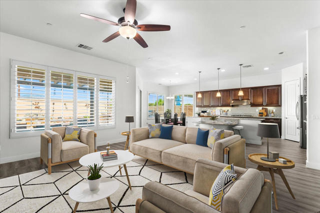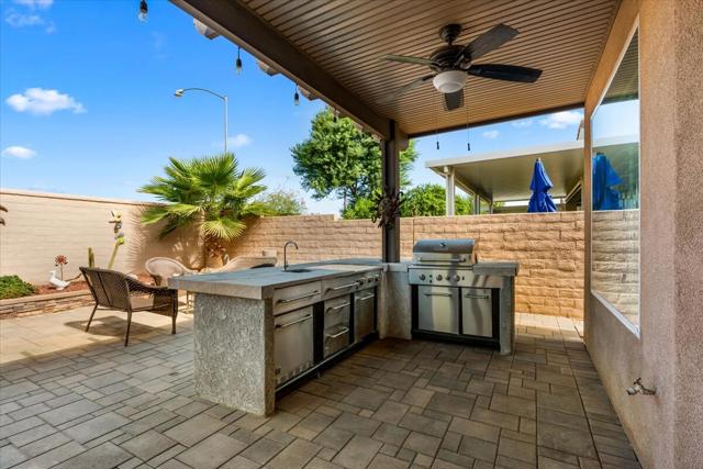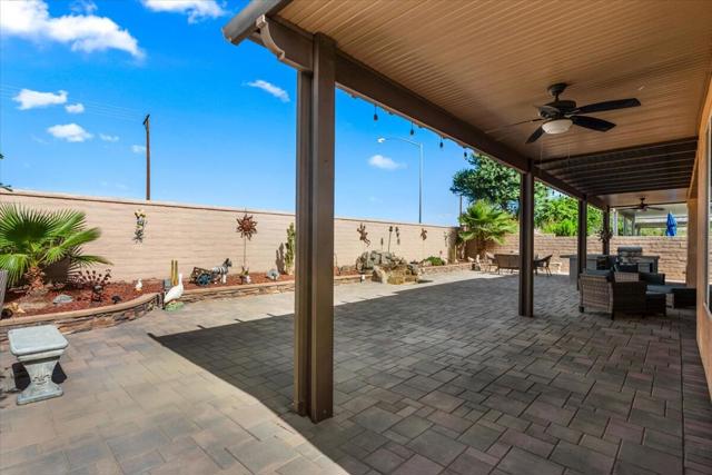 Exquisite 3BR, 3BA ~''The Gathering'' model spans 2,331 sq ft, beautifully renovated. *Inviting front pavers * Synthetic grass, promising minimal upkeep and maximum beauty. *Hard flooring throughout (NO CARPET).* The kitchen showcases stainless steel appliances and tasteful backsplash. *The backyard transforms into your private oasis *Captivating mountain views * Water feature *Extended patio cover provides an expansive outdoor living space *A built-in BBQ stands ready for culinary delights.