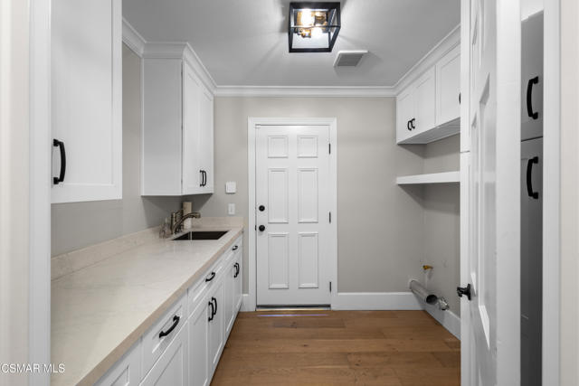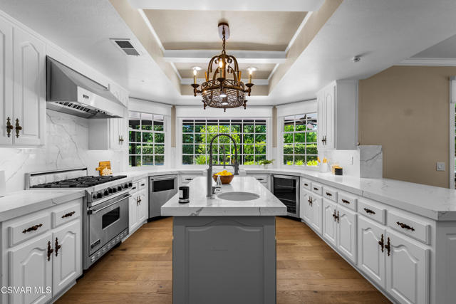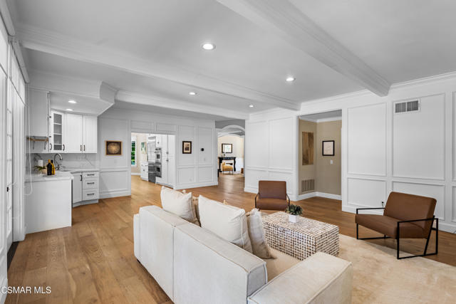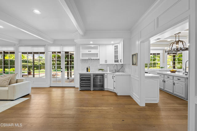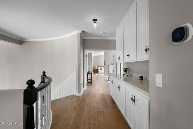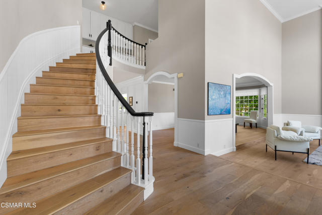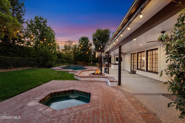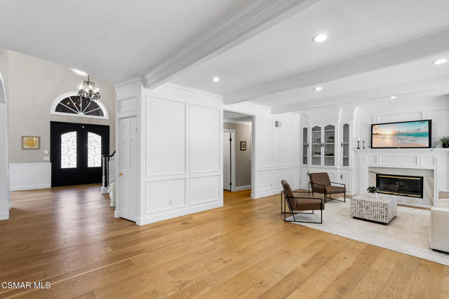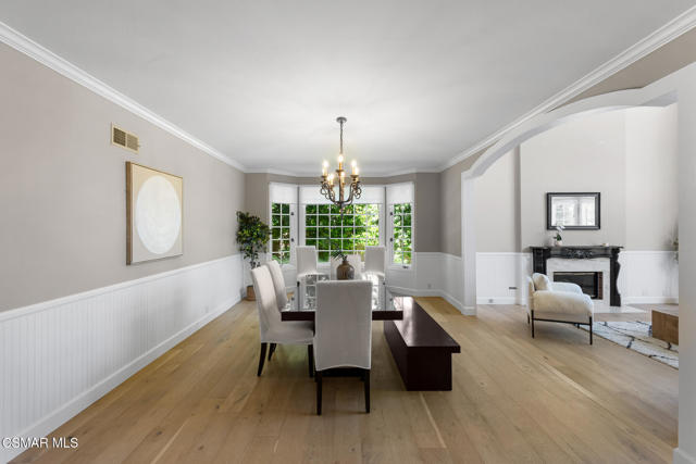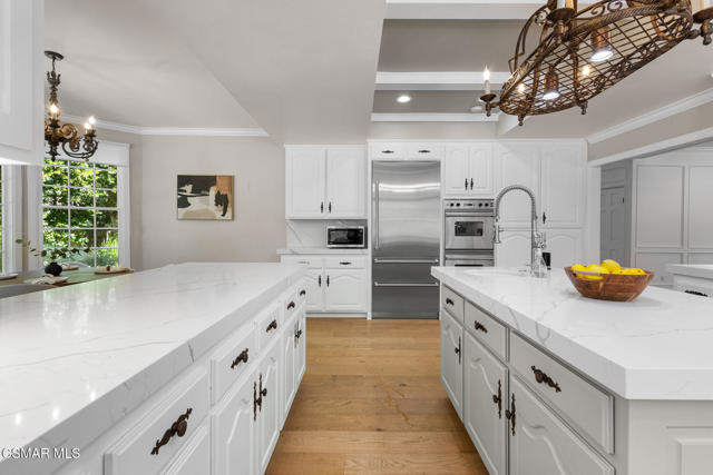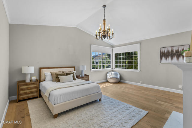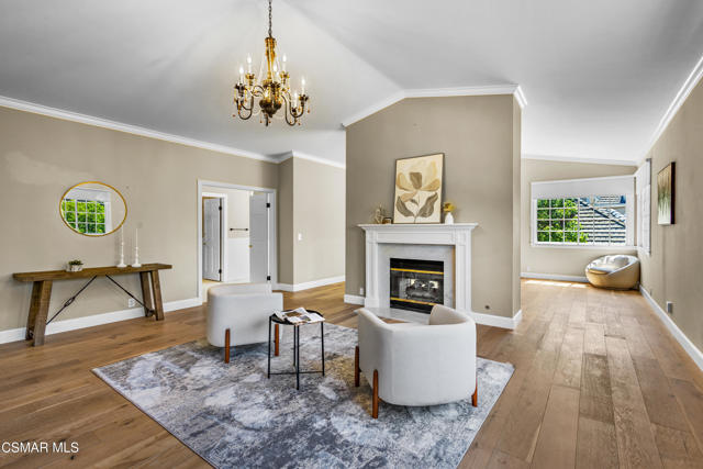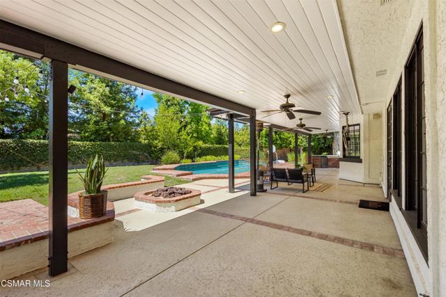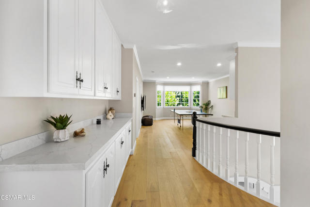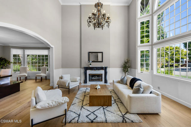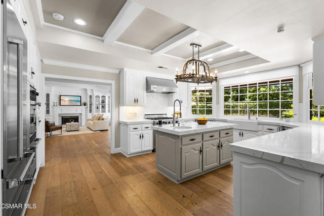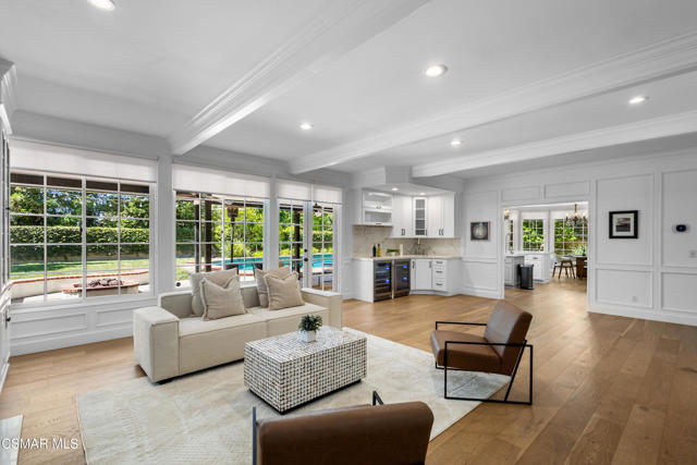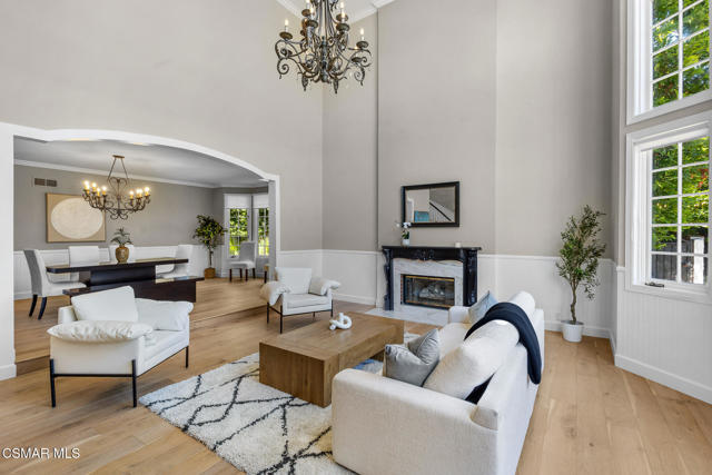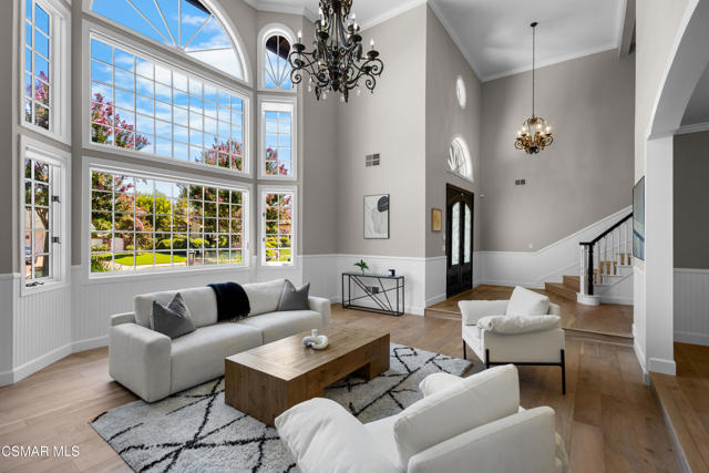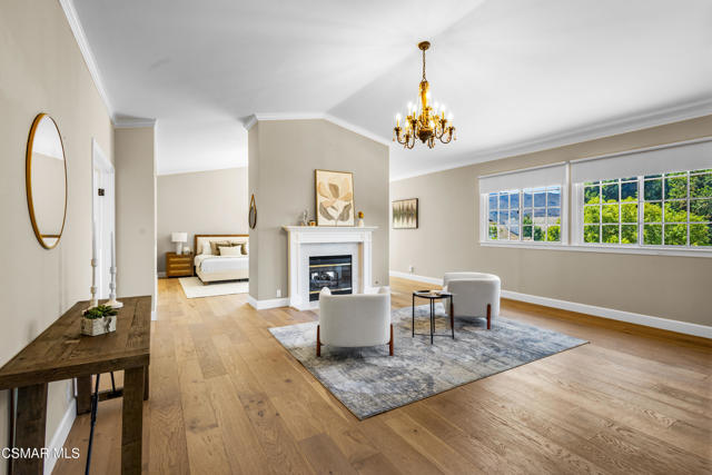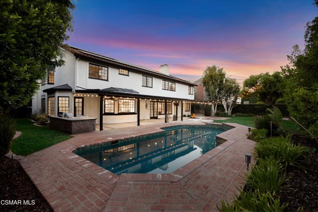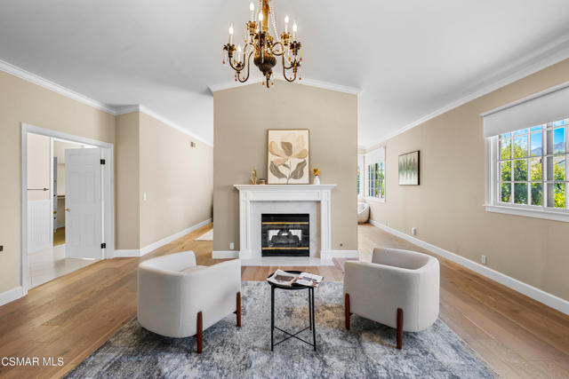 Welcome to 29340 Castlehill Drive, where elegance meets enchantment in the prestigious Morrison Highlands. This breathtaking 5-bedroom, 5-bathroom estate spans nearly 5,000 square feet of open living space bathed in natural light and has been beautifully reimagined with attention to every detail.Step inside to soaring ceilings and a graceful flow that draws you into the heart of the home. The formal living room, filled with sunshine, opens to a sophisticated dining room, ideal for hosting both lively gatherings and intimate dinners. Just beyond, the family room offers warmth and comfort with its inviting fireplace, custom built-ins, and wet bar, while walls of windows frame views of the backyard.The kitchen is a showpiece for any cook, with professional-grade Viking appliances, a Franke farmhouse sink, striking Calacatta Laza quartz counters, and generous workspace. A casual dining area and seamless connection to the family room make it the perfect everyday hub. On this level, you will also find two private en-suite bedrooms, each with tastefully remodeled baths, ideal for guests or multi-generational living.Upstairs, a light-filled family lounge welcomes you with a dry bar, beverage center, and ample storage, a perfect space for game nights, weekend movies, or simply unwinding with good company. Two large secondary bedrooms are served by a beautifully updated bath, while the primary suite offers an indulgent retreat. A separate sitting room with a double-sided fireplace creates a cozy escape or private workspace, and two spacious walk-in closets lead to a luxurious spa-like bathroom.Through charming French doors, the backyard feels like your own private resort. Set on a third of an acre, this personal haven features a sparkling pool and spa surrounded by generous lawn space and room to play. The built-in BBQ, covered patio, and multiple sitting areas make it easy to entertain or simply enjoy a quiet afternoon outdoors.Throughout the home, you will find thoughtful custom touches, from chair rail and refined moldings to designer fixtures that add character and warmth. Recent updates include new hardwood floors, custom window treatments, designer light fixtures, a tankless water heater, newer HVAC units, pool heater, and filter, along with remote-controlled shades, smart dimmers, and LED lighting.Located in one of Agoura Hills' most desirable neighborhoods, this home offers not just beauty but also convenience, with close proximity to award-winning schools, charming dining, scenic hiking trails, and the Pacific Ocean.