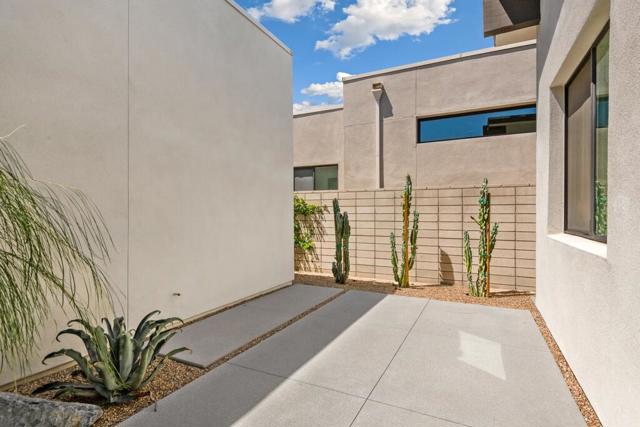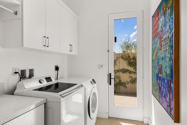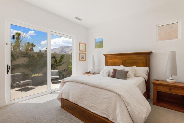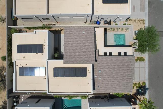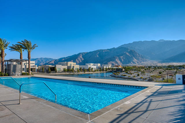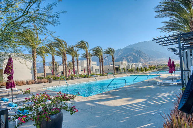 Exclusive private gated community of Miralon in Palm Springs, just minutes from downtown! This home comes with OWNED SOLAR, providing energy efficiency, savings, and long-term value. The private yard features a sparkling 8x15 cocktail pool with tanning shelf and umbrella sleeve, outdoor shower, programmable pool heater, drip irrigation, and landscape lighting--all framed by a peek at the San Jacinto Mountains. Inside, the modern open floor plan is filled with natural light. The kitchen boasts premium Bertazzoni & Bosch appliances, a Samsung refrigerator with interior beverage center, crisp white cabinetry, and a large island with bar seating. Smart home upgrades include Brilliant switches, Honeywell smart thermostat, programmable exterior lights, Ring system, and keyless entry. All bedrooms are spacious, including a primary retreat with outdoor access. With 3.5 baths, three with walk-in showers, the home blends comfort and style. Community amenities include lakes, dog parks, walking trails, plus a clubhouse with pools, spa, gym, yoga/Pilates, bar, demo kitchen, herb gardens, and more!