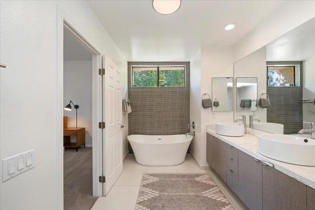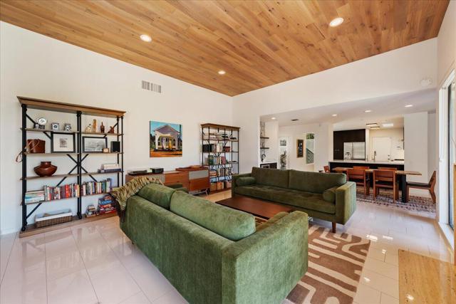 Welcome to 1800 S. La Paloma. This residence is located within the Twin Palms community of South Palm Springs. This sought after enclave of just 33 one level units set on seven lush acres was designed by Laszlo Sandor, whose bold 1970s Brutalist architecture helped define the ''secondwave'' of mid-century Desert Modernism. Renowned for his sleek design and harmonious integration of indoor andoutdoor spaces, the home features an open floor plan to take full advantage of light, views and access to the outdoors. High ceilings and well-proportioned rooms enhance the feeling of spaciousness.This 2BR - 2BA home features an updated kitchen open to the living and dining spaces. The living room boasts a wet bar, soaring wood clad ceiling, and a cozy fireplace withtravertine surround. A recent desert landscape renovation off the living room enhances privacy and adds visual interest. The primary bedroom features its own private patio and en suite bathroom with updated shower and new freestandingtub. The second bedroom opens onto the front patio and adjoins the additional bathroom, creating a private space for guests. The parklike common areas feature 2 community pools, spa, and sports court (pickleball and tennis). An attached two car garage includes new full-sized stackingwasher/dryer and industrial style rolling racks for ample storage.