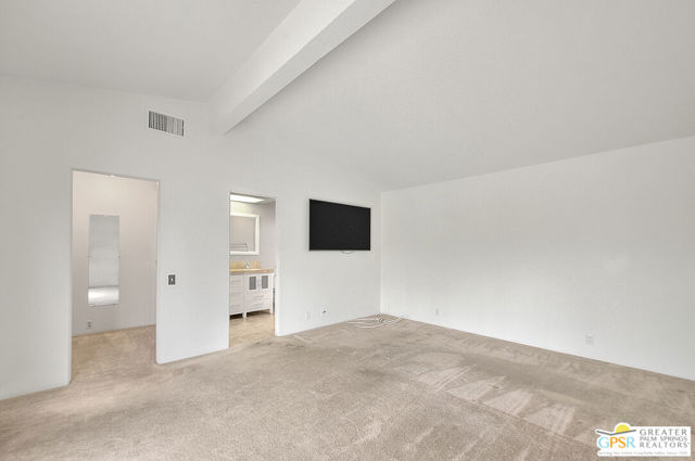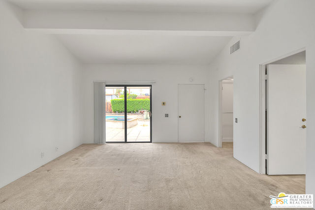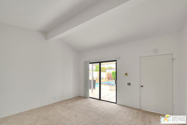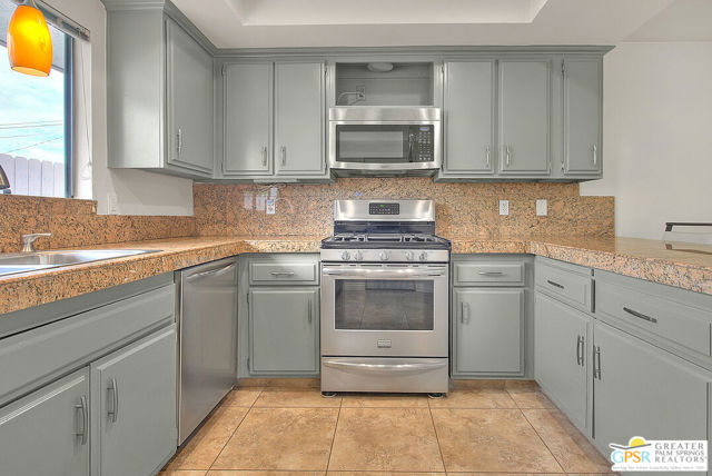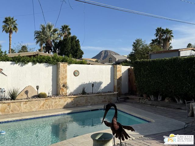Welcome to your desert oasis, located just a leisurely 3-block stroll from the world-famous El Paseo, with its upscale dining, art galleries, shops, and year-round events. This updated home is an entertainer's dream that boasts 3 bedrooms, 2 baths, and a versatile room that can be used as an office, a den or a 4th bedroom. This home includes a stunning backyard with a sparkling pool, raised spa, two fire pits, and a built-in gas BBQ. The open-concept layout features vaulted ceilings in the living room and primary bedroom, complemented by a gas fireplace. The modern kitchen shines with sage gray refurbished cabinets, polished nickel pulls, granite countertops, stainless steel appliances, and recessed lighting with a dimmer switch. Five sliding glass doors offer seamless indoor-outdoor flow with gorgeous pool and backyard views. The primary suite indulges with a remodeled bath, dual sinks, a walk-in shower with bamboo rain glass and pebble tech flooring, plus a walk-in closet with built-ins. A private guest bedroom with French doors opens to a gated, tiled courtyard, ideal for morning coffee. Additional highlights include 20" ceramic tile and plush carpet flooring, a remodeled guest bath, a private entry courtyard with terracotta pavers, and an attached 2-car garage with built-in cabinetry. Set on a 7,405 sq ft lot with privacy walls and three hand-hammered fountains, this beautifully maintained home is your ticket to sophisticated desert living.