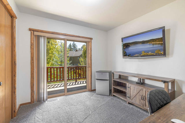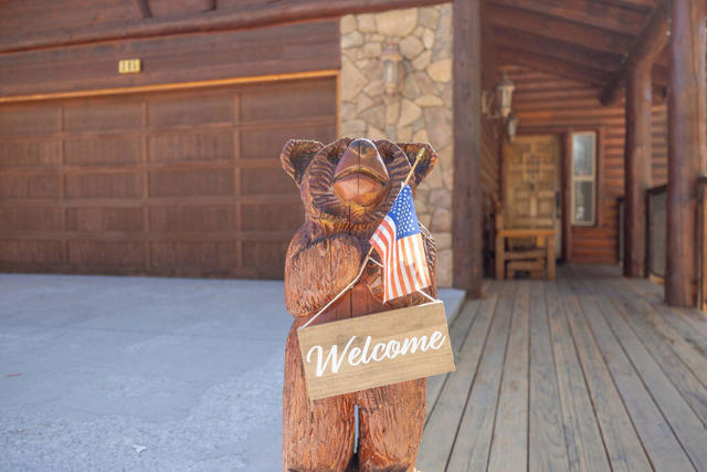 Beautiful Log-Style Mountain Home in prime Castle Glen Big Bear location! This well-maintained 3 bed, 3 bath home + bonus room is located on a cul-de-sac with low traffic. Vaulted tongue-and-groove ceilings and an open floor plan create a warm, spacious feel. The main level features the living room, spacious kitchen with granite countertops and knotty alder cabinetry, an oversized 3/4 bath, and bonus room that can serve as a 4th bedroom or office. Updated luxury vinyl wood like flooring upstairs and in hallways and baths downstairs; bedrooms are carpeted. En suite primary bedroom includes a fireplace, huge walk-in closet, jacuzzi soaking tub & separate shower. All bedrooms have sliding glass doors to the lower rear deck. Enjoy outdoor living with covered front porch and rear decks on both levels. Efficient vinyl dual-pane windows throughout. Attached 2-car garage. Never used as a rental--pride of ownership throughout. Centrally located near Big Bear Lake, Bear Mountain ski slopes, Golf, Big Bear Zoo, the village, dining & more!