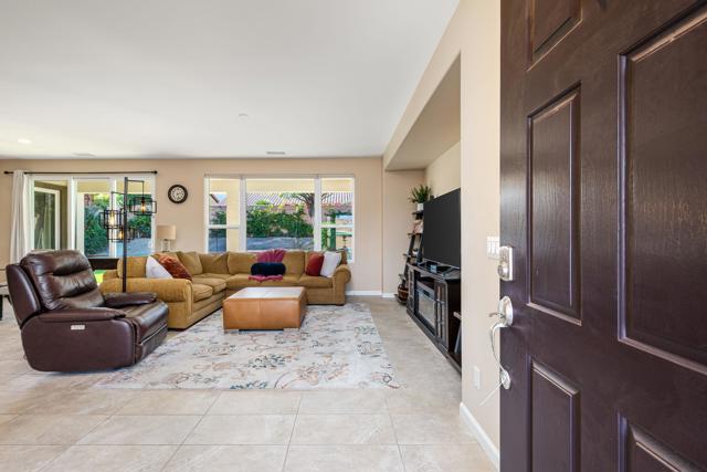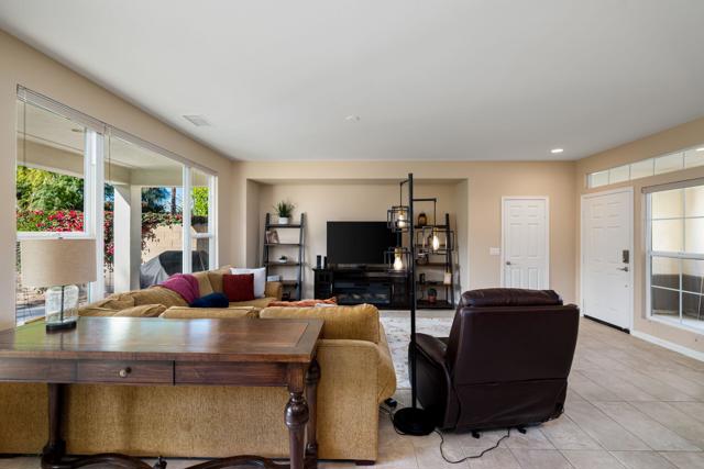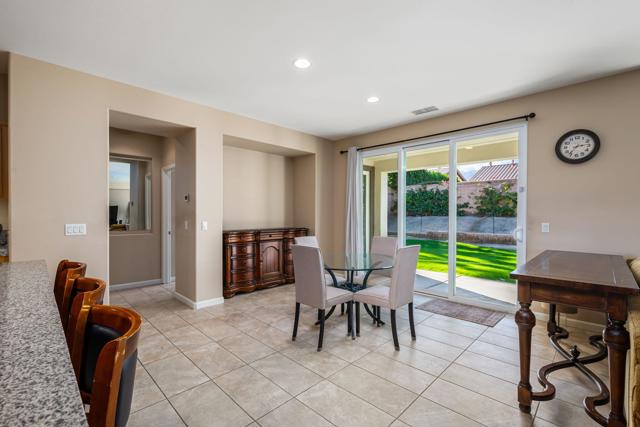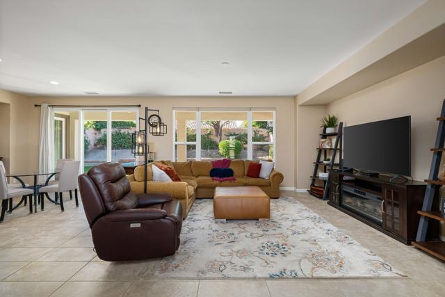 Experience the relaxed desert lifestyle at Trilogy La Quinta, where resort-style amenities include golf, tennis, pickleball, bocce ball, and a state-of-the-art fitness center. Ideally located just minutes from the Santa Rosa Clubhouse, this desirable Oasis plan offers 2 bedrooms, 2 baths, 1551 sqft. of interior living space, a dining area, and an inviting great room with a built-in TV/media niche. The chef's kitchen features granite countertops, a gas range, prep island, breakfast bar seating, spacious pantry, and built-in microwave. The guest quarters enjoy an adjacent full bath and excellent privacy from the master suite, which boasts abundant natural light, a spa-like bath with dual vanities, shower enclosure, dressing area, and a generous walk-in closet. The backyard is a blank canvas, ready for your dream pool or the ever-popular SPOOL concept, while the covered patio provides shade and year-round comfort. Just a short golf cart ride away, Kitchen 1011 offers outstanding dining, all framed by breathtaking mountain and golf course views. Schedule your private tour today!