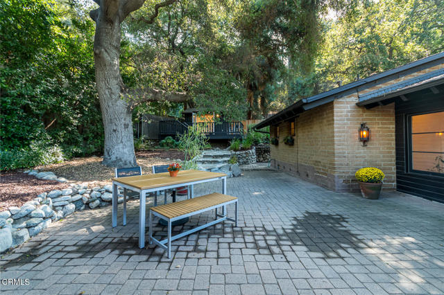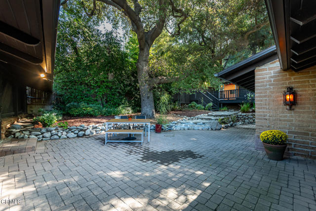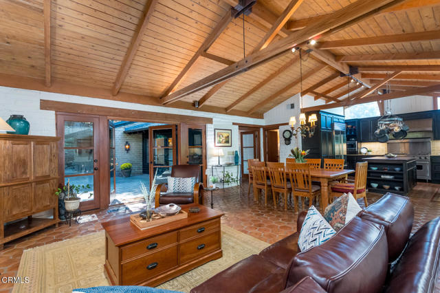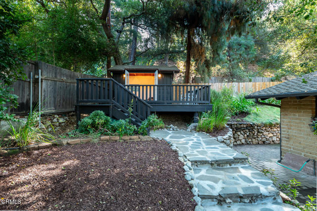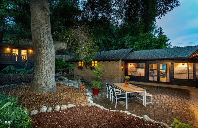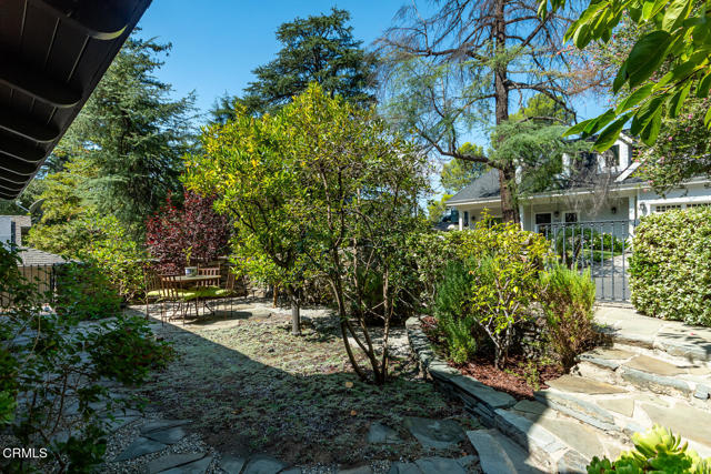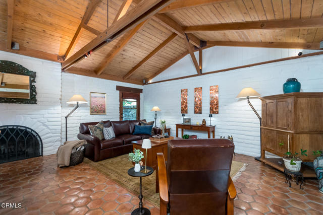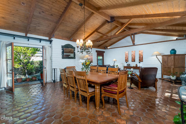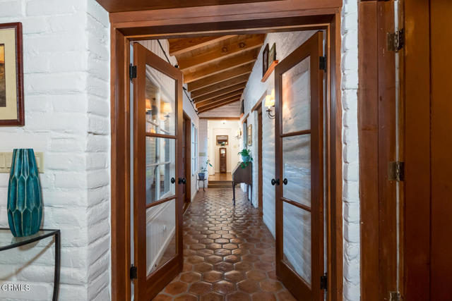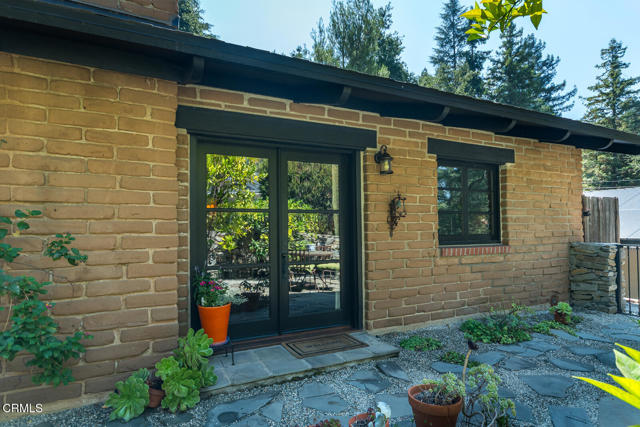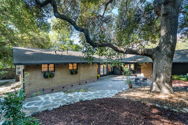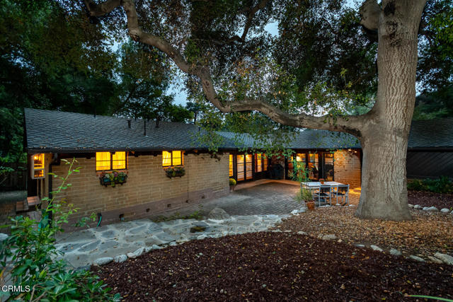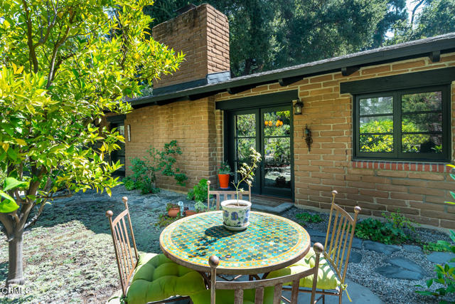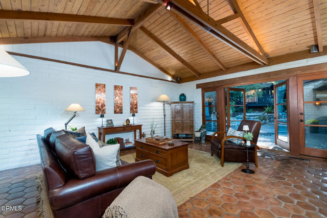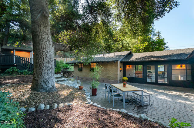 Lovingly cared for by the same family for over two decades, this adobe residence blends authentic heritage with timeless Spanish character & modern comfort. Located on a tree-lined street just moments from Palm Crest Elementary, the home offers the tranquility of a quiet neighborhood while remaining close to everyday conveniences. A stone front fence w/black iron gates opens to a landscaped courtyard w/stone walkways, a sitting area & mature persimmon & lemon trees, creating an inviting entry that reflects the home's natural connection to the outdoors. Inside, the residence opens to a dramatic great room w/pitched ceilings & exposed beams, setting the stage for generous & comfortable living. The living room serves as the heart of the home, w/French doors extending to the back patio for seamless indoor-outdoor flow. The dining area adjoins both the living room & kitchen, creating a versatile space for casual meals or formal gatherings. The updated kitchen is anchored by a large center island & a wide single-basin sink overlooking the front garden, complemented by cabinetry & modern finishes. A dedicated laundry room just beyond adds convenience. A powder room serves guests before double doors open to the private wing. Here, a hacienda-inspired hallway is lined w/expansive windows & French doors that overlook the central patio & backyard. The first bedroom is currently used as an office, followed by a second bedroom & a stylish 3/4 bath. At the end of the hall, the primary suite features French doors to the yard, a spa-like bath w/soaking tub & separate shower, a towel warmer & a charming bay window that forms a sunlit niche ideal for plants or a small indoor garden. The backyard is designed for relaxation & entertaining, w/a broad paver patio framed by greenery & gentle landscaping. Stone steps lead to a large elevated deck & a detached office/studio. From the deck, views of the home & surrounding trees create the feeling of a private oasis. True to adobe tradition, the thick walls provide natural insulation, keeping interiors cooler in summer & warmer in winter, a sustainable design that enhances comfort year-round. Among the very few adobe homes in La Canada, this residence represents a unique opportunity to own a piece of California's architectural heritage. With Spanish-inspired details, inviting interiors & cultivated gardens, it embodies the essence of California living, offering a private retreat minutes from award-winning schools & local amenities.