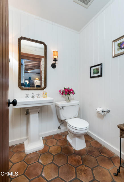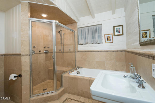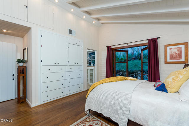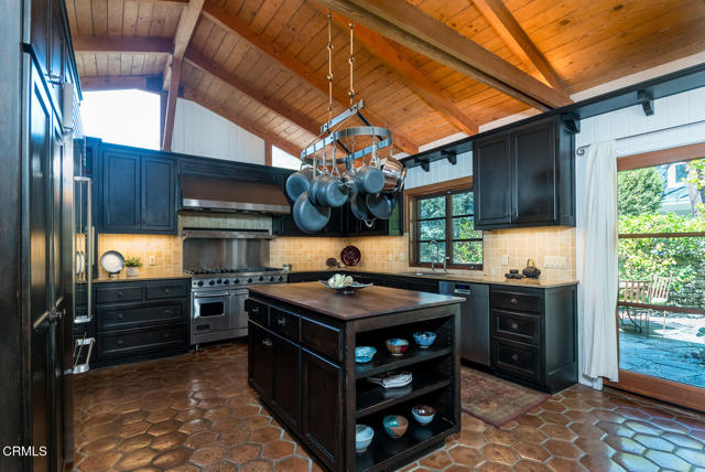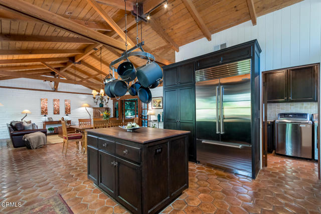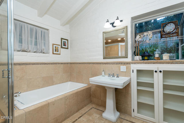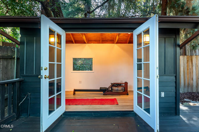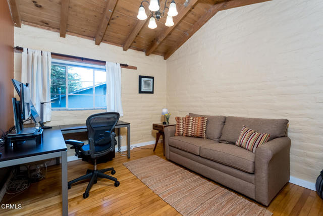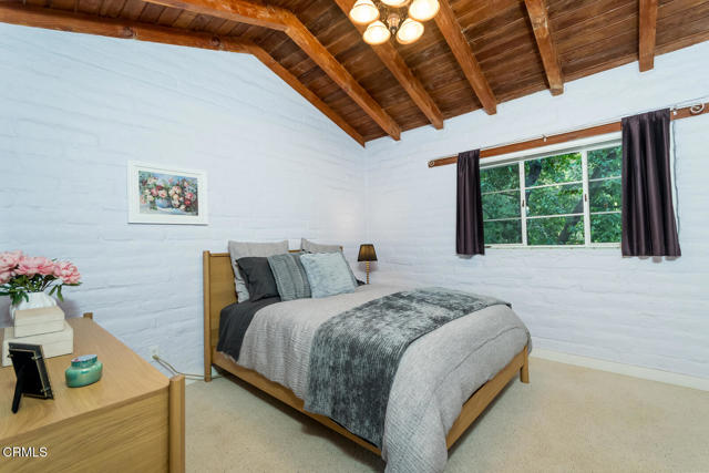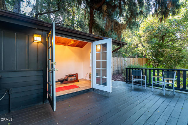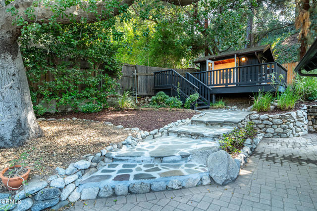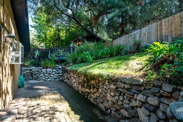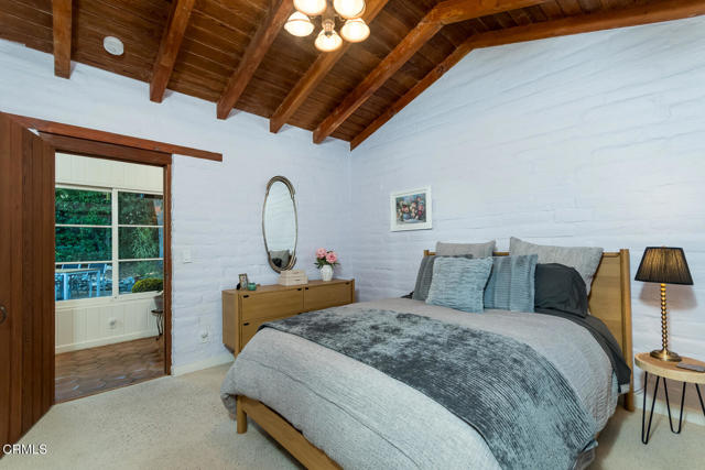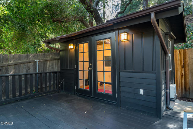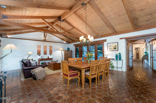 Lovingly cared for by the same family for over two decades, this adobe residence blends authentic heritage with timeless Spanish character & modern comfort. Located on a tree-lined street just moments from Palm Crest Elementary, the home offers the tranquility of a quiet neighborhood while remaining close to everyday conveniences. A stone front fence w/black iron gates opens to a landscaped courtyard w/stone walkways, a sitting area & mature persimmon & lemon trees, creating an inviting entry that reflects the home's natural connection to the outdoors. Inside, the residence opens to a dramatic great room w/pitched ceilings & exposed beams, setting the stage for generous & comfortable living. The living room serves as the heart of the home, w/French doors extending to the back patio for seamless indoor-outdoor flow. The dining area adjoins both the living room & kitchen, creating a versatile space for casual meals or formal gatherings. The updated kitchen is anchored by a large center island & a wide single-basin sink overlooking the front garden, complemented by cabinetry & modern finishes. A dedicated laundry room just beyond adds convenience. A powder room serves guests before double doors open to the private wing. Here, a hacienda-inspired hallway is lined w/expansive windows & French doors that overlook the central patio & backyard. The first bedroom is currently used as an office, followed by a second bedroom & a stylish 3/4 bath. At the end of the hall, the primary suite features French doors to the yard, a spa-like bath w/soaking tub & separate shower, a towel warmer & a charming bay window that forms a sunlit niche ideal for plants or a small indoor garden. The backyard is designed for relaxation & entertaining, w/a broad paver patio framed by greenery & gentle landscaping. Stone steps lead to a large elevated deck & a detached office/studio. From the deck, views of the home & surrounding trees create the feeling of a private oasis. True to adobe tradition, the thick walls provide natural insulation, keeping interiors cooler in summer & warmer in winter, a sustainable design that enhances comfort year-round. Among the very few adobe homes in La Canada, this residence represents a unique opportunity to own a piece of California's architectural heritage. With Spanish-inspired details, inviting interiors & cultivated gardens, it embodies the essence of California living, offering a private retreat minutes from award-winning schools & local amenities.