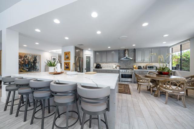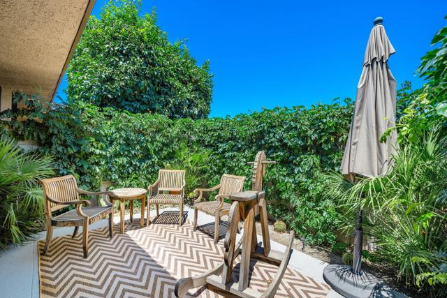 Amazing TURN-KEY, FULLY FURNISHED, 3 bedroom 3 bathrooms. This generous 3,088 square foot Cypress Point floor plan has been thoughtfully renovated. Highlights include: custom cabinetry throughout, gourmet kitchen with large, central island for seamless entertaining, outdoor fireplace and an indoor sauna. You have complete privacy in your own pool with custom waterfall feature, and raised hot tub. The first owner's suite has views of the San Jacinto mountains beyond the accessible back patio, with thehot tub and pool just steps away.It's a fashionista's dream to have a walk-in closet, custom cabinetry, and two floor to ceiling 9 foot reach in closets.This space includes a spa-like ensuite bathroom. With a soaking tub, shower, sauna, and a double vanity.The equally sized second owner's suite opens to a private patio surrounded by lush foliage. The ensuite bathroom has a spacious and luxurious tandem shower. The ample walk-in closet has been convertedinto a whimsical bunk room, perfect for additional guests. Enjoy plenty of closet space with two floor to ceiling 9 foot reach-in closets. The third bedroom has been converted into a flex space. It includes: a built-in desk (for two) with customcabinetry, a Queen size Murphy bed, and custom bookshelves on either side. The flex room sits adjacent to the third bathroom. The third bathroom is equipped with a large glass-enclosed walk-in shower, perfectfor guest use. Other standout features include: large laundry room with sink, full size refridgerator/freezer, 26 leasedsolar-panels, pull down TV arm above mantle, two car garage, plus golf cart garage (with it's own entrance). All custom cabinetry built-ins in the garage are included.