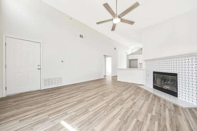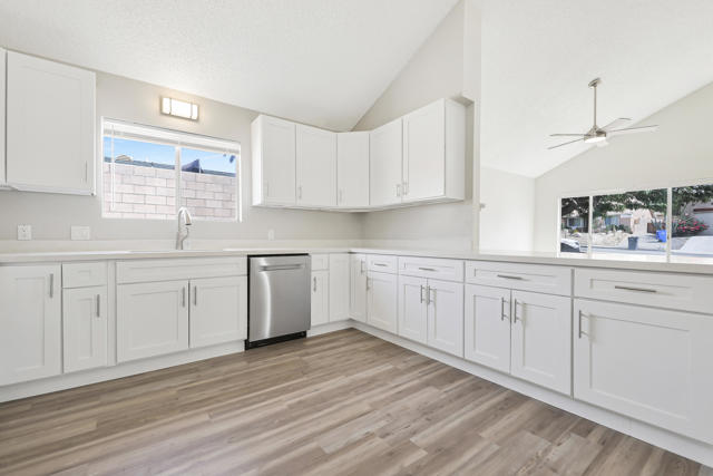 Step into this beautifully remodeled home located in a well-established neighborhood of Desert Hot Springs A masterful renovation brings out the best with modern finishings, offering today's homeowner a practical and inviting floor plan with modern conveniences and charm. Step inside to a functional, open layout with a natural flow from room to room. The living area enjoys easy connectivity to the kitchen, making entertaining and day-to-day living seamless. The remodel showcases sleek, luxury vinyl plank flooring throughout, high vaulted ceilings, new lighting and ceiling fan fixtures, and decorative gas fireplace. The brand new kitchen is a chef's dream, complete with stainless steel appliances, custom cabinetry, and quartz countertops with a peninsula bar for casual dining. The spacious master suite opens to a patio with amazing panoramic mountain views. Whether you're relaxing indoors, stargazing from the patio, or exploring nearby shops and restaurants, this home offers the ultimate desert lifestyle.