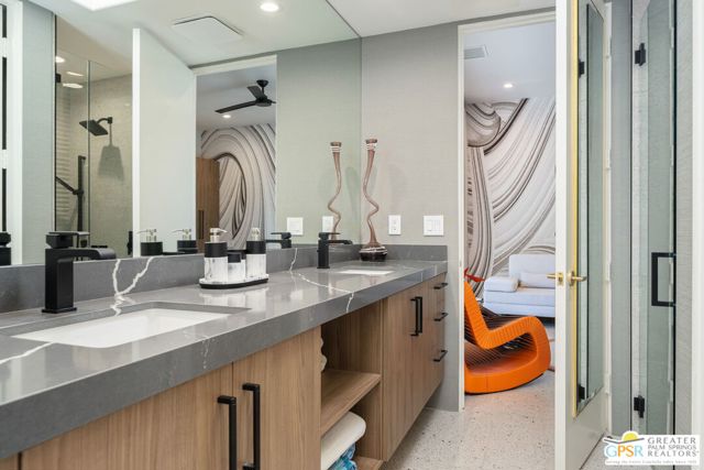 Welcome to this stunning luxury home, where timeless elegance meets modern sophistication. From the moment you arrive, you'll be captivated by its grand presence, impeccable craftsmanship and resort-style amenities designed for both comfort and entertaining.Step inside to soaring ceilings, Terrazzo tile floors, expansive windows that flood the home with natural light and an open concept floor plan that blends seamlessly from one space to the next. The chef's kitchen is truly outstanding, featuring custom cabinetry, a Walker Zanger backsplash, quartz countertops, and high-end Decor appliances, including a 48" range with a steam oven, two dishwashers, and a chef's sink. Stylish Kelly Wearstler pendant lights add a designer touch. The dining area and intimate breakfast nook provide flexible dining options. Retreat to the primary suite, a true sanctuary featuring a walk-in closet, a secondary closet, and built in dresser. Two additional spacious en-suite bedrooms provide luxurious accommodations for family and guests. A versatile office/media room with custom cabinetry can be converted into a fourth bedroom. Outdoors, the meticulously landscaped grounds showcase a sparkling pool and Spa, lounge areas, and an outdoor built is BBQ for unforgettable entertaining. Every detail of this home was designed with sophistication, comfort, and desert lifestyle in mind. This is more than a home it's a statement of luxury living.