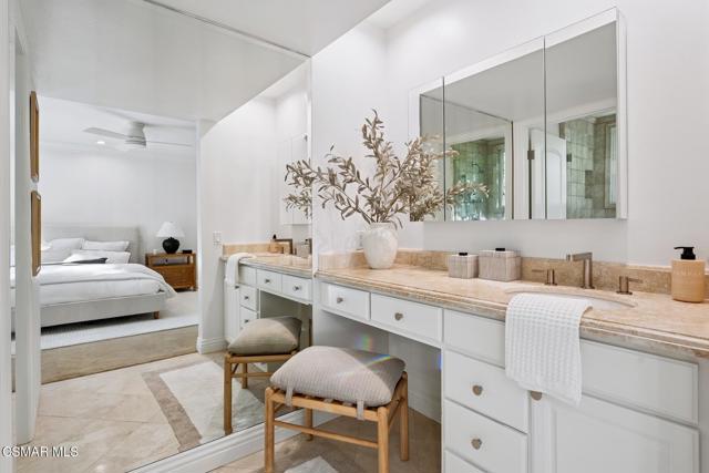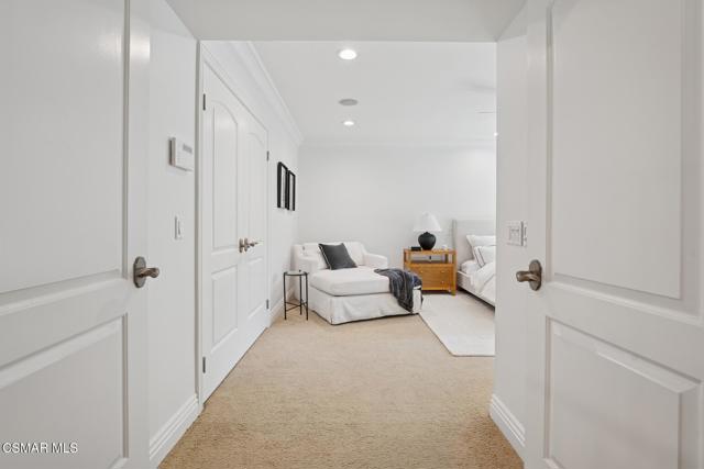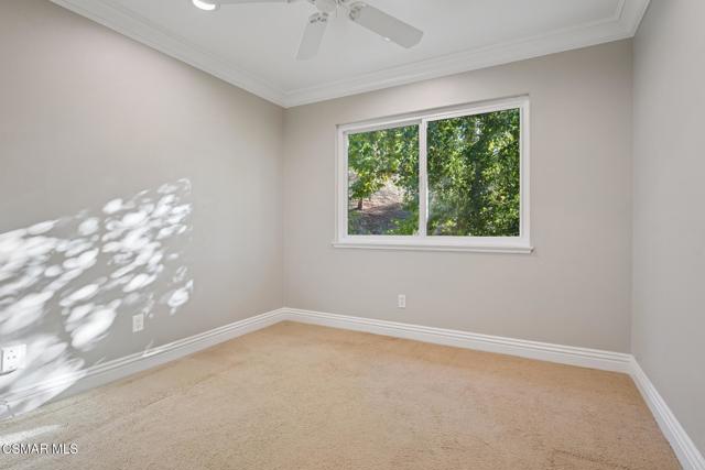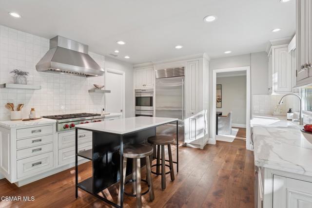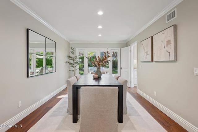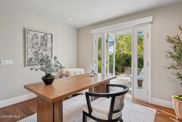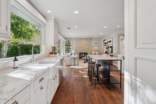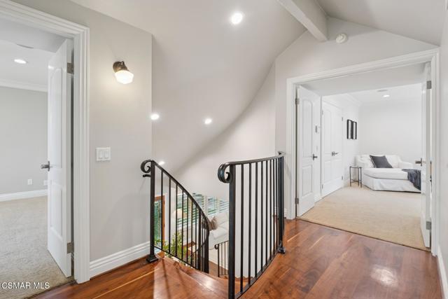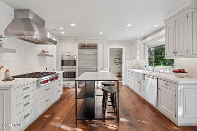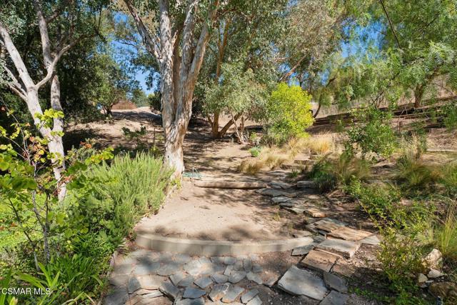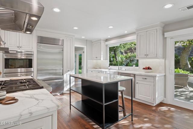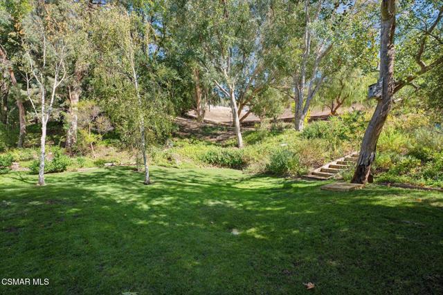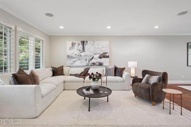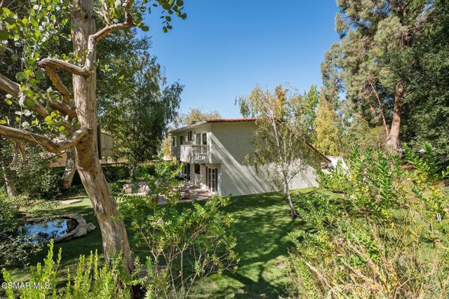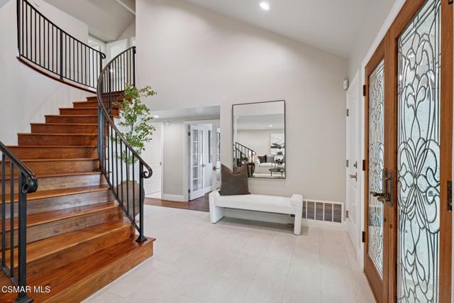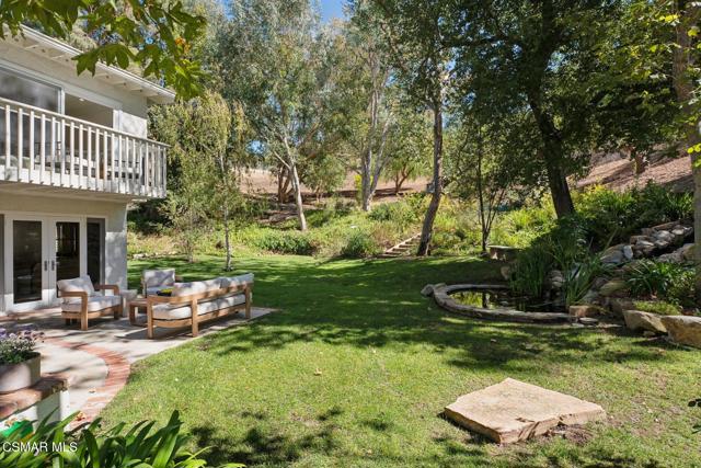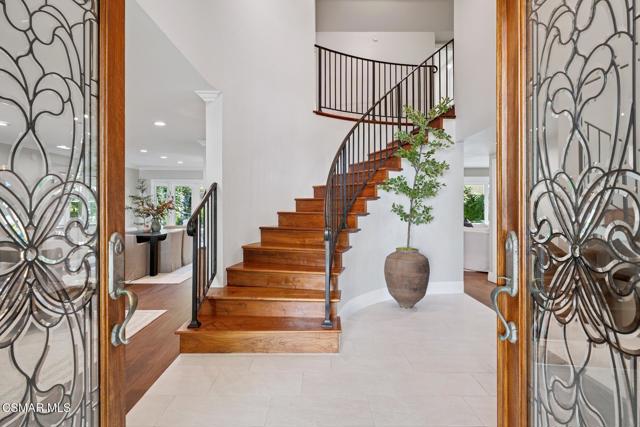 Tucked at the end of a quiet cul-de-sac in the sought-after Fountainwood neighborhood, 5900 Gleam Court stands as the community's most extraordinary property, set on an expansive one-acre lot with sweeping views of Agoura Hills and Ladyface Mountain.Step inside through the grand double-door entry to soaring ceilings, a dramatic spiralstaircase, and natural walnut wood floors that glow with warmth and character. Theformal living room features high ceilings and abundant light, while the elegant diningroom opens through double French doors to a scenic backyard terrace.The chef's kitchen is a showpiece, featuring a Wolf cooktop, double ovens, and hood,Sub-Zero refrigerator, Bosch dishwasher, Calcutta marble countertops, custom insetcabinetry with soft-close drawers, an apron-front cast-iron farmhouse sink, and a walk-inpantry--all open to the comfortable family room for effortless entertaining.Additional highlights include LED recessed lighting, automatic shades by The ShadeStore, and integrated indoor/outdoor speakers by Wilshire Entertainment. A downstairs office/bedroom with French doors leads to a private patio, adjacent to a magnificently updated full bath featuring a curbless shower, Calcutta marble tile, and a Toto Neorest bidet toilet--all designed with ADA compliance in mind.Upstairs, the primary suite is a retreat of its own, offering a private balcony, a walk-incloset, and a beautifully updated en-suite bath. Three additional oversized bedroomsand a spacious remodeled full bath complete the upper level, all showcasing Milgardwindows and doors throughout.Outside, the backyard is an entertainer's paradise--a multi-level sanctuary with atranquil waterfall, large patio with firepit, lush grassy area, and a horseshoe pit--plusendless room for a pool, guest house, or sports court. The paver driveway leads to a 3-car garage, providing both beauty and functionality.Impeccably updated and lovingly maintained, this one-of-a-kind property combines refined craftsmanship, modern amenities, and rare usable acreage--all within minutes of award-winning schools, parks, and the best of Agoura Hills living.