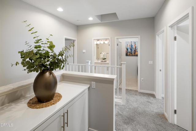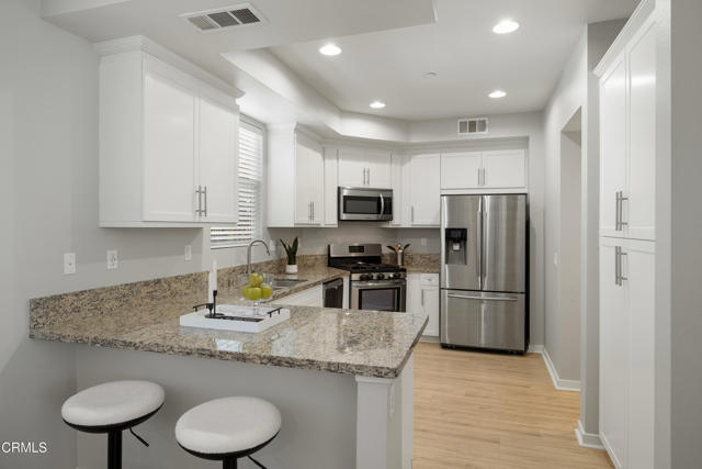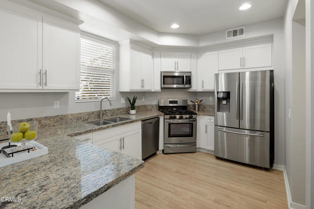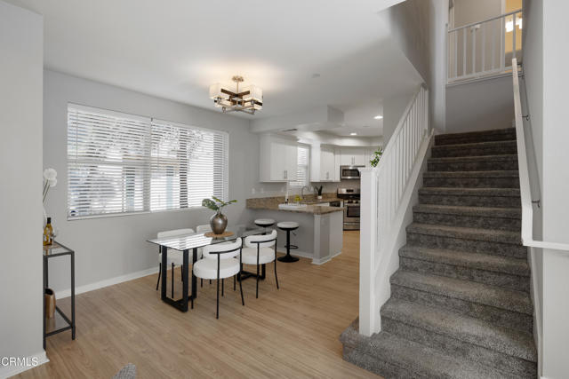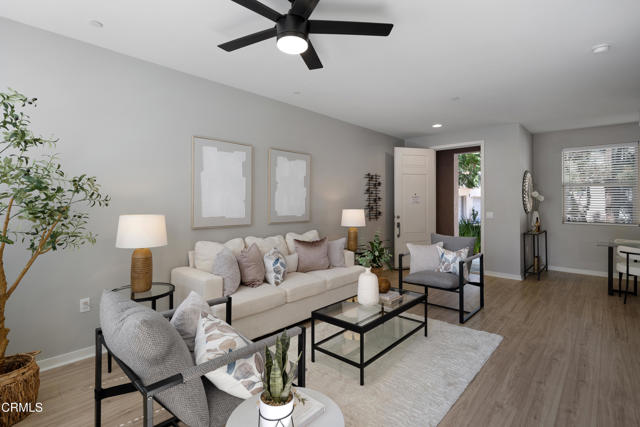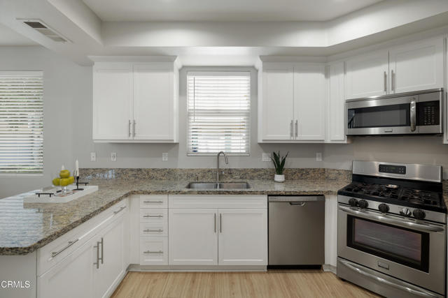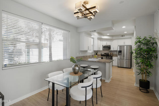Behind the private gates of the sought-after VEO community lies a home that feels warm, refined, and effortlessly livable. This beautifully maintained 4-bedroom, 3-bath townhome offers the perfect blend of comfort, style, and connection, where every space invites you to slow down, gather, and enjoy the moments that matter most. From the moment you walk through the front door, you're welcomed by wood-like flooring and an airy, open layout that flows naturally from the living room. out to a peaceful private patio perfect for morning coffee, evening wine, or quiet conversation under the stars. The dining area opens to the kitchen, both functional and beautiful, featuring granite countertops, eat-at counter seating, recessed lighting, and sleek stainless steel Frigidaire Gallery appliances, with the exception of a Samsung refrigerator. A guest bath and direct garage access offer everyday convenience, while thoughtful storage under the stairs keeps life organized and easy. Upstairs, the primary suite feels like a retreat with its walk-in closet, ceiling fan, and spa-inspired ensuite featuring dual sinks, stone countertops, and a subway-tiled glass shower. Three additional bedrooms provide flexibility for family, guests, or a home office, each with soft carpet underfoot and gentle natural light. A full hallway bathroom, a dedicated laundry room, and modern finishes complete the upper level. Life in VEO is about more than just your home, it's about community. Enjoy resort-style amenities, including a sparkling pool and spa, clubhouse with kitchen and pool table, fire-pit, and playground. Whether it's a weekend barbecue, a swim under the sun, or an evening stroll through the gated grounds, this is a place where neighbors become friends and every day feels a little brighter, ideally located in close proximity to Ralph's Grocery Store with a private entrance from the complex to the store. Experience the ease of modern living and the warmth of true community in this turnkey townhome gem.