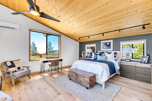 Behind the custom gate and set across 2.87 pristine acres, Sky Ranch is one of Idyllwild's most storied and significant estates. Once the historic horse stables of General George Patton, the property has been masterfully reimagined into a refined mountain sanctuary where legacy meets modern elegance.The single-level main residence features soaring ceilings and walls of glass that frame panoramic views of Lily Rock and the San Jacinto Mountains. An open-concept design blends grand entertaining with intimate retreat, while curated finishes and exceptional craftsmanship create understated sophistication throughout.The compound includes three separate residences: the luxurious main home, a beautifully appointed one-bedroom guest house, and a detached two-car garage with a striking studio above and lower-level flex space-ideal for a private office, creative retreat, or executive guest quarters. Multiple patios, al fresco dining, a fire pit under the stars, and a private Pickleball court offer a resort-caliber lifestyle surrounded by natural beauty and privacy, just moments from town. Sky Ranch is a rare, generational mountain estate - 1 to 2 hrs from LA, San Diego and the Desert Floor!