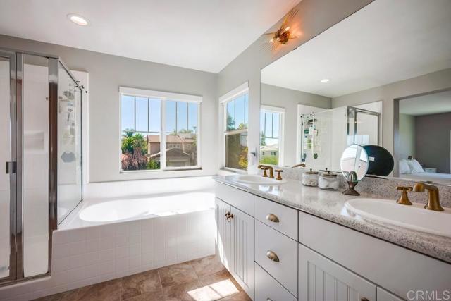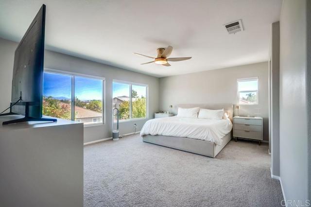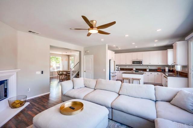 Priced at $679,000 to $699,000... Welcome to this stunning, fully upgraded home located in Spencer's Crossing community on a private cul-de-sac in one of Murrieta's most desirable neighborhoods and top-rated school districts. Offering nearly 2,000 sq. ft. of living space, 3 bedrooms, 3 bathrooms, and a spacious 3-car garage with epoxy flooring, this property combines modern elegance with everyday comfort. Step inside and you'll find designer finishes throughout: gold-tone hardware, faucets, ceiling fans, door knobs, and cabinet pulls create a luxurious feel in every room. Remote-controlled electrical blinds add ease and sophistication, while Cafe appliances in white and gold bring a sleek touch to the kitchen, complete with a reverse osmosis water system. The open-concept family room features a gas & wood-burning fireplace and flows seamlessly to the formal dining area — perfect for entertaining. Upstairs, the primary suite is very spacious and offers breathtaking mountain views, with snow-capped peaks in the winter. The suite also includes a beautifully upgraded bathroom, designed to provide both style and comfort. The backyard is a true showstopper — fully transformed with custom concrete design and lush artificial turf, creating a low-maintenance yet stylish retreat. String lighting and a built-in gas fire pit set the stage for unforgettable evenings outdoors. Additional highlights include wood laminate and tile flooring, a custom double cast-iron side gate, and one of the largest lots in the area — over 9,000 sq. ft. — providing exceptional space for entertaining, relaxing, and enjoying outdoor living. Situated in the award-winning Murrieta School District and just minutes from Temecula's world-renowned wineries, this home also offers walkable access to the community clubhouse, neighborhood parks, and a resort-style pool. The perfect balance of luxury, lifestyle, and convenience — welcome home!