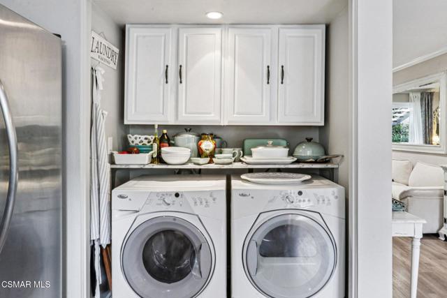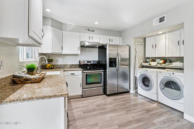 Welcome to this gorgeously updated farmhouse-style townhome in the heart of Agoura Hills! This 2-bedroom, 1.5-bath gem in the Lake Lindero community offers the perfect blend of modern comfort and timeless charm - ideally located between Westlake Village and the Valley.Come inside and you'll find an inviting open layout with wood-like flooring and recessed lighting throughout. The refreshed kitchen features a new tile backsplash, new sleek vent hood, new under the sink reverse osmosis water filtration system, granite countertops, stainless steel appliances, and an in-unit laundry area. A walk-in pantry and stylish half bath complete the first floor.Upstairs, a custom wrought-iron railing leads to the spacious primary bedroom with a large walk-in closet, window shutters, and a cozy office nook. The secondary bedroom enjoys peaceful mountain views and easy access to a full bath.Enjoy the outdoors from your private gated patio or explore nearby Lake Lindero and Reyes Adobe park. Additional highlights include a newer HVAC system, direct garage access (one space in a shared two-car garage), and tranquil hilltop views.The Lake Lindero Townhomes HOA covers water, trash, roof and wall maintenance, earthquake and fire insurance, landscaping, and guest parking - offering peace of mind and low-maintenance living. In additional, the HOA allows rentals!If you're looking for a peaceful, nature-filled neighborhood close to great schools, restaurants, and shops, this charming townhome is ready to welcome you home.