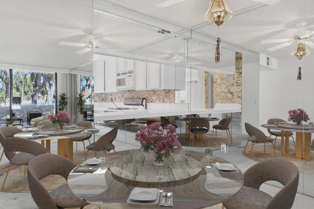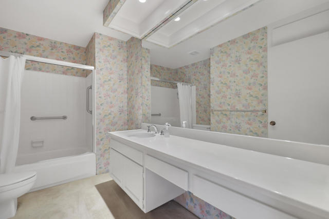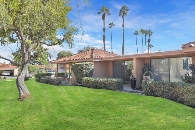 This one-bedroom, one-and-a-half-bath condo is ideal for low-maintenance living or relaxing seasonal getaways. The front courtyard enjoys plenty of morning sun, perfect for sipping coffee, while the back patio offers a park-like setting with trees, lake views, water features and glimpses of the mountains. Sunrise Country Club is a guard-gated community with 746 residential condos, an 18-hole golf course, 9 championship tennis courts, 10 Pickle Ball courts and 21 swimming pools and 19 spas. Club amenities include golf, tennis, fitness center, clubhouse dining room & grill at discounted prices. Conveniently located in Rancho Mirage, it's close to shopping, dining, and entertainment at The River and El Paseo, with Eisenhower Hospital just minutes away. Palm Springs International Airport is only a 15-minute drive.