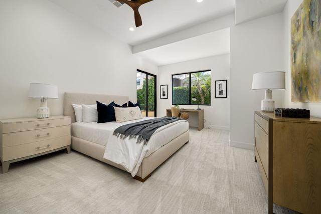 MODERN. REMODELED. STUNNING VIEWS. PRIVATE POOL. Step into desert luxury like never before! A private gated courtyard welcomes you with style, leading to a bold Glass Pivot Front Door--a dramatic entrance to a showstopping home where elegance meets innovation. Inside, every detail speaks of high design and impeccable craftsmanship. Soaring ceilings, sleek modern finishes, and walls of glass flood the home with natural light while showcasing breathtaking views of the mountains and the 13th fairway of the prestigious Desert Horizons Golf Course. The open-concept great room is a true statement--anchored by a striking porcelain-faced fireplace, designer lighting, and a sophisticated wet bar--perfect for entertaining or simply unwinding in luxury. Slide open the doors to a covered patio and BBQ area where indoor-outdoor living comes alive under the desert sky. The chef's kitchen is a dream: outfitted with top-of-the-line appliances, a stunning Quartz island with waterfall edges, breakfast bar, and open sightlines to the gathering areas--ideal for casual mornings or stylish soirees.Step outside to your own private oasis: a sparkling pool and spa with panoramic fairway views, offering the ultimate setting for relaxation or sunset entertaining.This 3-bedroom, 3.5-bath home is all about comfort and privacy. Each bedroom features its own designer en-suite bathroom, with the main suite taking luxury to new levels--think spa-inspired retreat with a freestanding tub, oversized shower, custom porcelain finishes, and a spacious walk-in closet.Additional features include a full laundry room, 2-car garage plus separate golf cart bay--everything you need for living the Desert Horizons lifestyle with ease.And don't forget the newly reimagined Desert Horizons Country Club--home to world-class amenities like the new courts pavilion, state-of-the-art fitness center, private golf course, and an exciting calendar of social events.This is yet another fabulous Desert Home Investors creation--where modern design meets timeless desert elegance.